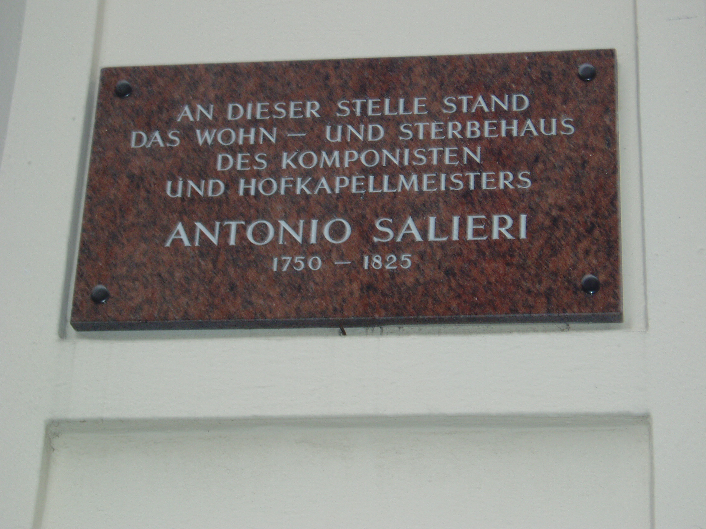Nyilvános 1158 | 2024 | Spiegelgasse 7. (Gottweihergasse sarok) | Az épületen Antonio Salieri emléktáblája olvasható, mely szerint "ezen a helyen állott az a ház, amelyben élt és meghalt Antonio Salieri zeneszerző és udvari karmester (1750-1825)". |
