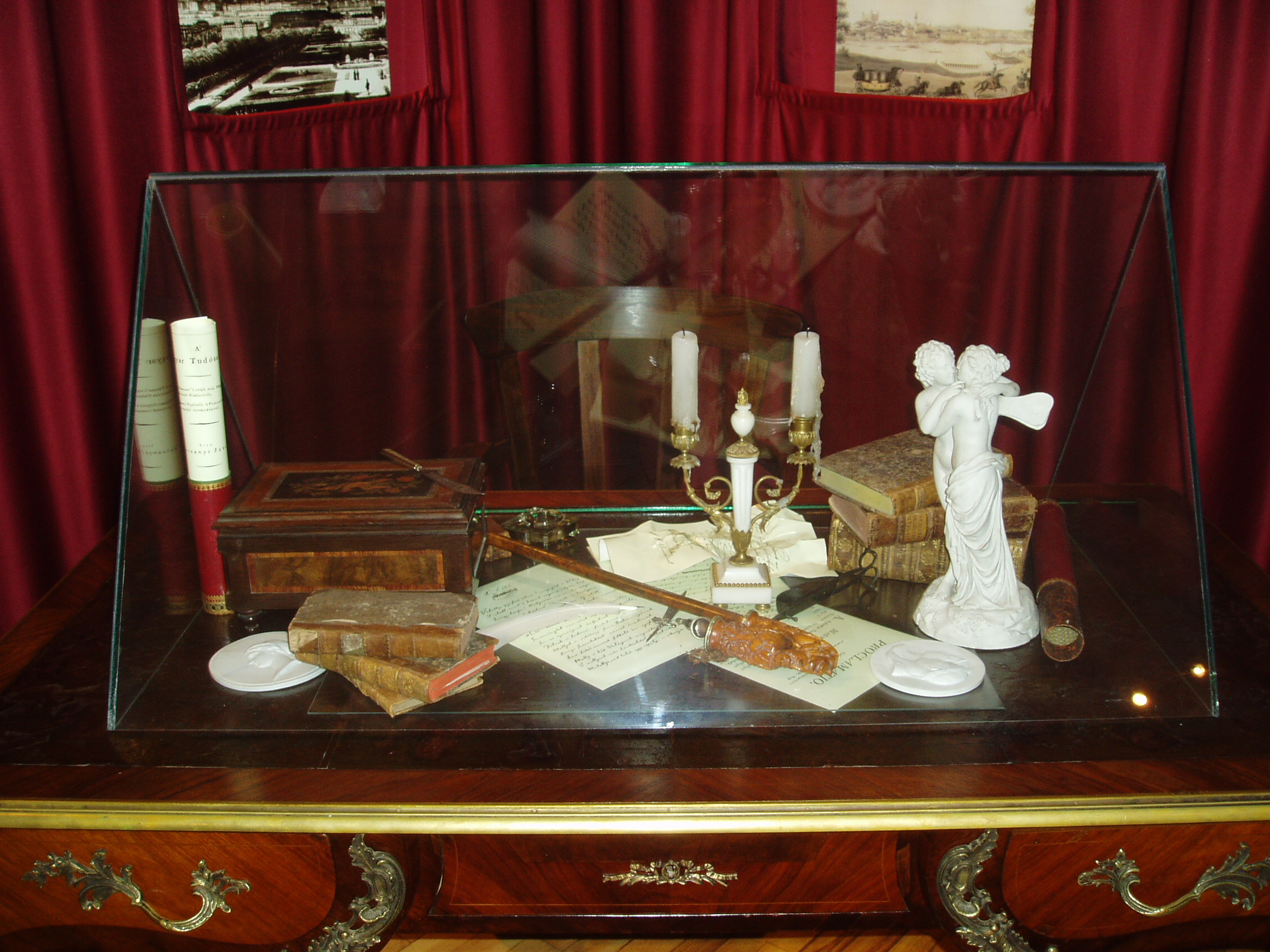 Nyilvános 1144 | 1823 | Tapolca: Templom domb 8. Múzeum | A múzeum épülete, az ún. Kántorház - a város védett építészeti emléke - Tapolca történelmi városközpontjában, a Malom-tó fölötti Templom dombon található. Ide járt elemi iskolába az 1770-es évek elején város nagy szülötte, Batsányi János költő. Részlet a Batsányi Emlékkiállításról: dolgozószoba-sarok. Az itt kiállított tárgyak konkrétan nem kötődnek Batsányihoz, csak korabeliek, illetve életének és pályájának főbb jellemzőit jelenítik meg. A Napóleon-plakett bonapartista irányultságát szimbolizálja. Ámor és Psyché szobra pedig feleségével,a bécsi származású költőnővel, Baumberg Gabriellával megélt és leélt múlhatatlan szerelem kifejezőjeként emlékeztet kettőjük kapcsolatára. A felvétel 2007 februárjában készült. Felh. irod.: Látnivalók Veszprém megyében. Miskolc, Well-PRess, 2000 Hangodi László: Múltbanéző - kiállításvezető a Tapolcai Városi Múzeum tárlataihoz. Tapolca, 2006 |