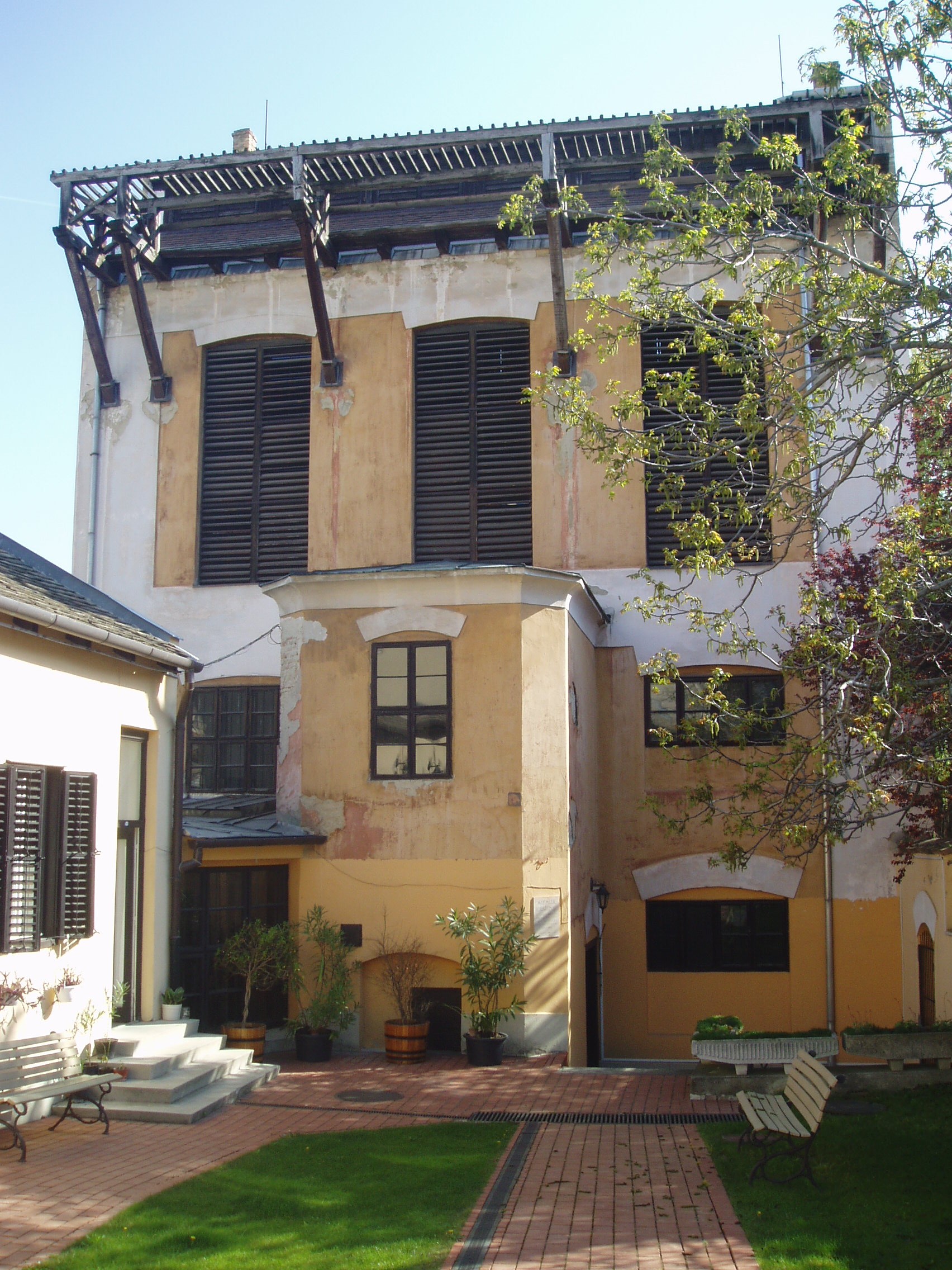 Nyilvános 1071 | 1599 | Pápa, Március 15. tér 12. Kékfestő Múzeum | Az 1962-ben megnyílt pápai Kékfestő Múzeum az egykori Kluge cég üzemének épületében és berendezéséből alakult. A céget 1783-ban alapította Sárváron a Szászországból bevándorolt Carl Friedrich Kluge, aki azonban 1786-ban már Pápán ezen a helyen, a mai Március 15. tér 12. számú épületegyüttes elődjében dolgozott. Fia, Kluge Károly, majd unokája, Kluge Ferenc is az ő mesterségét folytatta. Leszármazottai abban is követték az alapító Carl Friedrichet, hogy hosszas külföldi tanulmányutakat tettek. A cseh, porosz, thüringiai, bajor, svájci és osztrák műhelyekben tapasztaltakat itthon is alkalmazták, s ezzel fokozatosan kiemelkedtek a többi pápai kékfestő közül. A múzeum utca felőli épülete még a XVIII. századból származik. A képen látható udvari, három emeletes üzemépületet az 1860-as években emelték. Földszintjén ma is látható a 15 medencét befogadó küpaszoba, az ún. fekete konyhában a kifőzést és a keményítést szolgáló katlanok sora. Az emeleten a tarkázás, a kézi nyomás helyiségei találhatók, fölöttük pedig a hatalmas zsalugáteres, fedett padlástér és az innen kiugró nyitott erkélyszárító. A virágzó cég munkáját visszavetette az első világháború anyaghiánya és a falusiak népviseletből való fokozatos kivetkőzése. Az üzem végérvényesen 1956-ban zárta be kapuját. Egy és háromnegyed évszázados fennállása folyamán a család hét generációja váltotta egymást. A múzeumban a családi nagyüzem írott és tárgyi emlékei, eredeti berendezési tárgyai láthatók. Emmellett az intézmény folyamatosan kapcsolatot tart a még működő kékfestőmesterekkel, iparművészekkel, akik termékeikkel, alkotásaikkal rendszeresen gyarapítják a gyűjteményt. Ezekből az adományokból és vásárlásokból jött létre a kortárs hazai kékfestő-mesterek és műhelyek termékeiből rendezett állandó kiállítás. A fénykép 2007 áprilisában készült. Felh. irod.: Domonkos Ottó - Tóth Sándorné: Pápa, Kékfestő Múzeum. Bp. 1995, Cartographia. /Tájak, Korok, Múzeumok kiskönyvtára 205./ |
