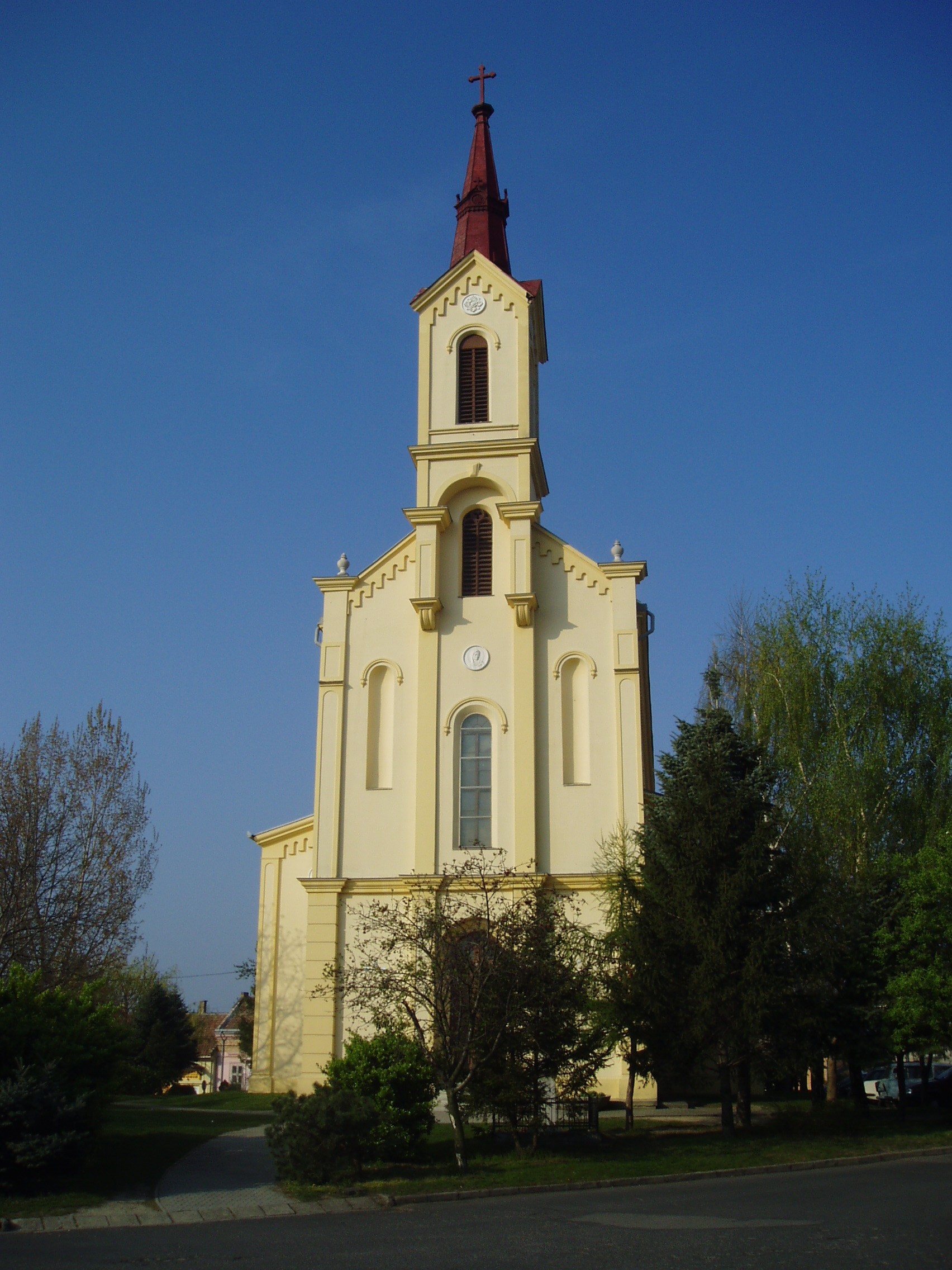 Nyilvános 1318 | 3255 | Pápa, Anna tér: Anna kápolna | Az Anna tér az egykori Alsóváros településközpontja. A tér dombján álló Szent Anna kápolna 1875-ben épült. Helyén az 1700-as évek derekán a reformátusok temetői fatemploma állt, ugyanis a téren valaha temető volt, amelyet 1830 körül számoltak fel. A hagyomány szerint e régi temetőben nyugszanak az 1575-ben Pápán elhunyt Huszár Gál, a magyar reformáció nagy alakjának hamvai (lásd még: Pápa, Zimmermann u. 4.). Az Anna-kápolna egyhajós, neoromán stílusú templom, mely Ranolder János megyéspüspök adományából épült a régi templom helyére. Előtte kőkeresztet állítottak az 1712. évi kolerajárvány elmúlásának emlékére. A fénykép 2007 áprilisában készült. Felh. irod.: Németh Adél - Szabó Lajos: Pápa. Bp. Panoráma, 1989 |