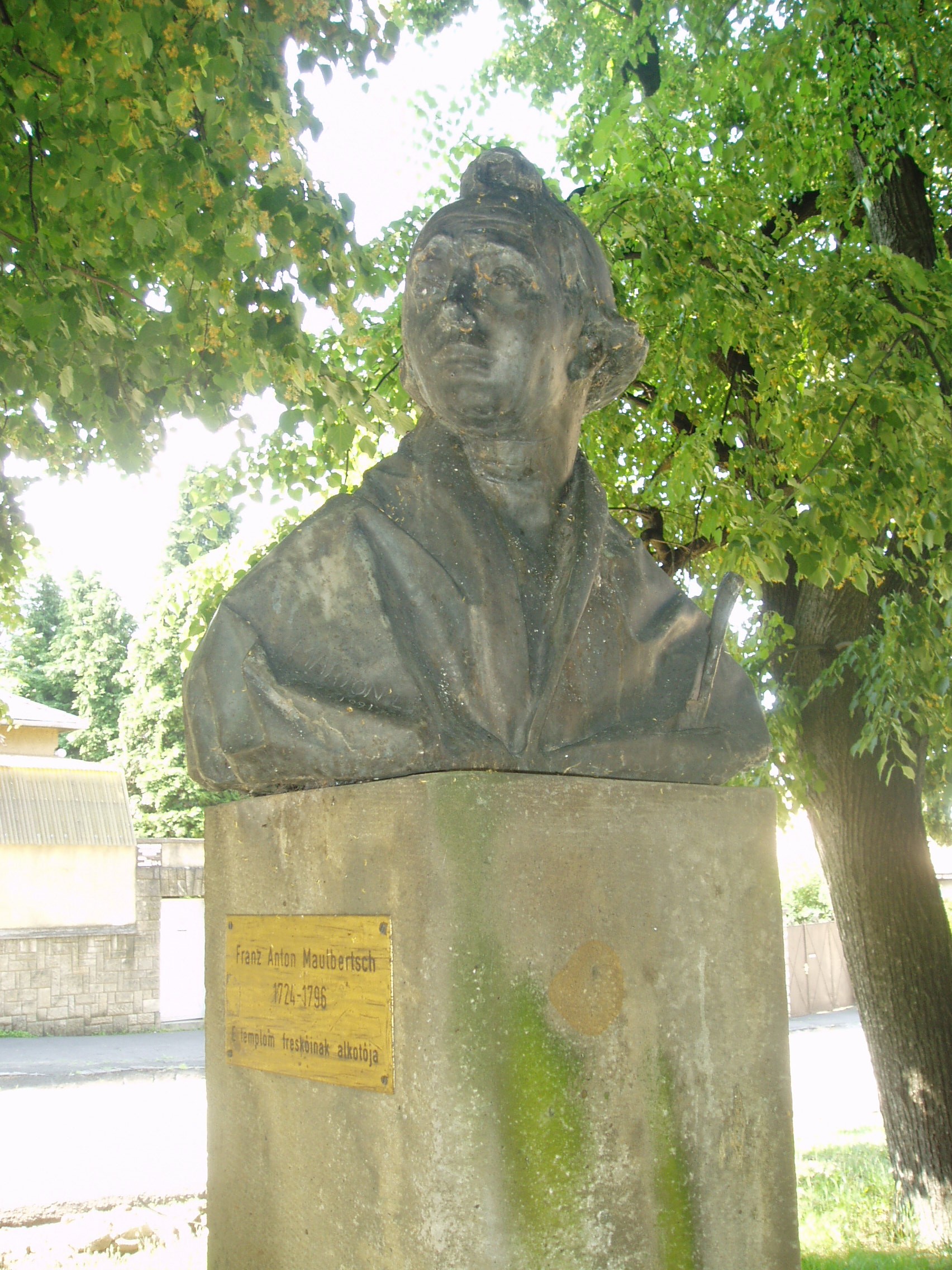 Nyilvános 1094 | 1649 | Sümeg, Bíró Márton utca 1. Plébániatemplom | Sümeg egyik legszebb épülete az Urunk mennybemenetele tiszteletére emelt római katolikus templom. Ezen a helyen már a XIV. században templom állott, melyet Padányi Bíró Márton lebontatott, és 1756-1759 között építtette fel a mai barokk plébániatemplomot. Építészetileg a barokk stílus általános, megszokott mintáit mutatja: nyugati főhomlokzatát hatalmas falpillérek díszítik, fölötte háromrészes főpárkány húzódik, a középrészben az építtető püspök címerével. Az épület igazi értékét Franz Anton Maulbertsch falfestményei jelentik, amelyek az egész templombelsőt beborítják. Nem véletlenül nevezik a templomot a rokokó Sixtus-kápolnájának. A templom előtti kis parkban állították fel az építtető püspök és a festőművész mellszobrait, mindkettő Marton László alkotása. A képen Franz Anton Maulbertsch (1724-1796) szobra látható. A fénykép 2007 júniusában készült. Felh. irod.: Koppány Tibor - Kozák Károly: Sümeg útikalauz. Veszprém, Idegenforgalmi Hivatal, 1965 Látnivalók Veszprém megyében. Miskolc, Well-PRess, 2004 Sümegi kalauz. Sümeg, Sümegi Fórum Alapítvány, 1993 |