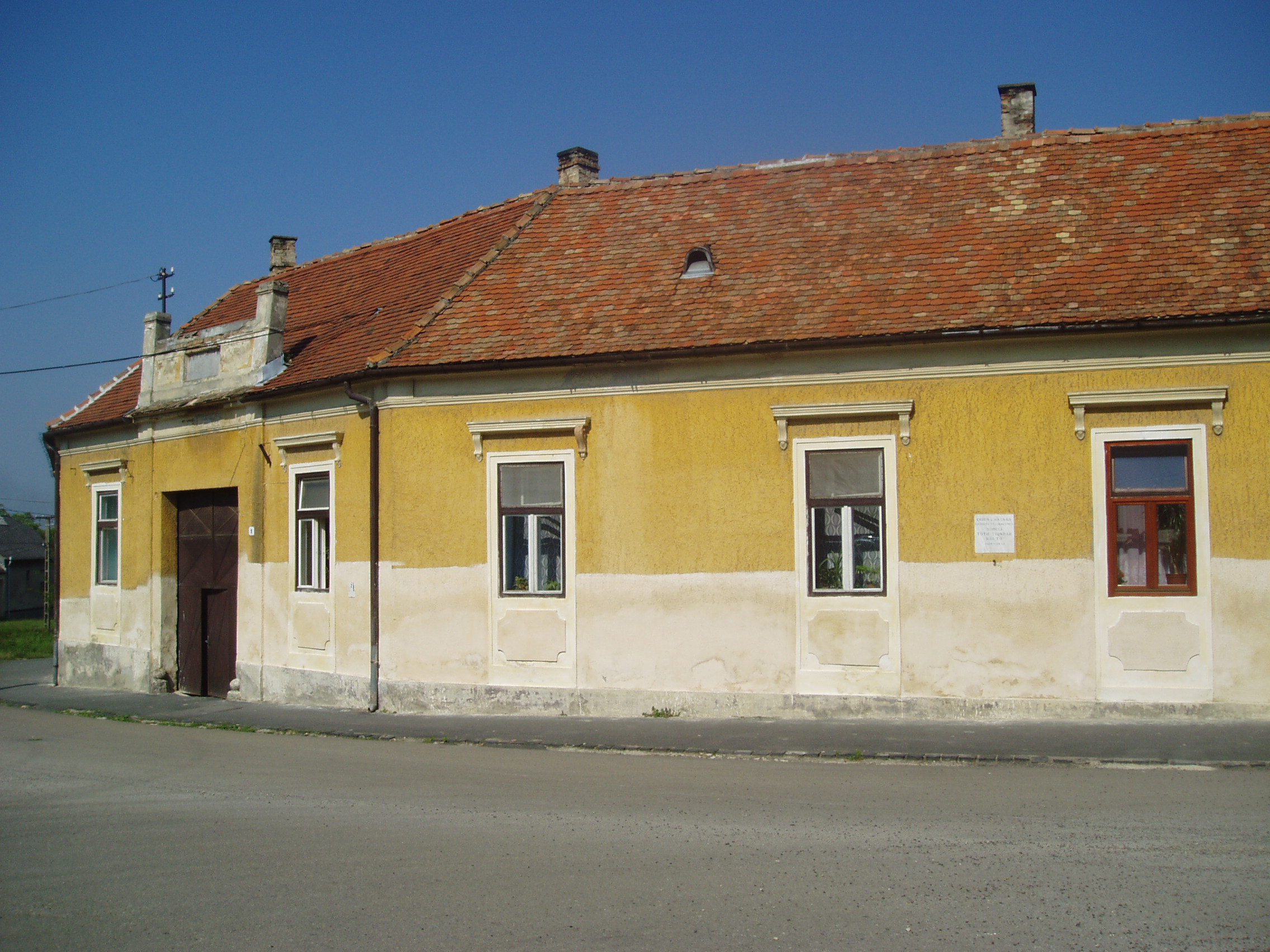 Nyilvános 1153 | 1844 | Sümeg, Cseh L. utca 1. | Mint az épület homlokzatán elhelyezett emléktáblán is olvasható, ebben a házban született és halt meg Sümegi Tóth Tivadar költő. Sümegi Tóth Tivadar (Sümeg, 1910. nov. 19. – Sümeg, 1942. aug. 15.) költő. Középiskola tanulmányok után sok mindennel próbálkozott, sokáig Budapesten volt tisztviselő. Hányatott sorsáról népies ízű, fanyar hangulatú versei tanúskodnak. A Magyar Élet és a Kelet Népe közölte költeményeit. Versei terjesztésének különleges módját választotta. Előbb kézírással, majd indigós gépeléssel 5–6 versét adta közre pár oldalas kis füzetekben. Fiatalon, tüdőbajban hunyt el. Verseinek gyűjteményes kötete 1995-ben jelent meg Életért kiáltok címmel a Sümegi írások sorozatban. A sümegi Városi temetőben nyugszik. A városban utca viseli nevét. A fénykép 2007 júniusában készült. Felh. irod.: Veszprém megyei életrajzi lexikon. Veszprém, 1998 |