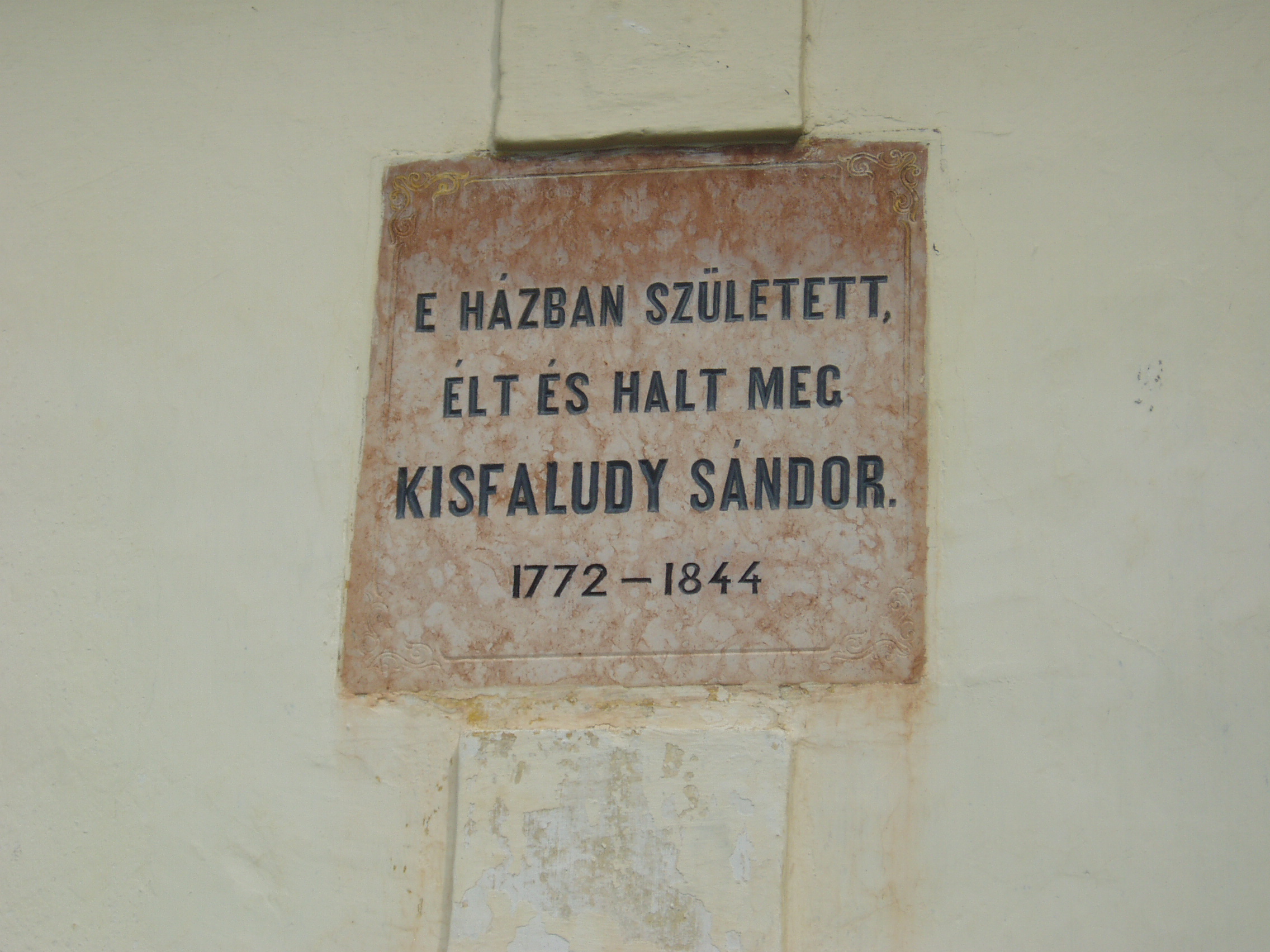Nyilvános 1132 | 1697 | Sümeg, Kisfaludy tér 2. | Ebben a házban, amely ma a Városi Múzeum otthona, született és halt meg Kisfaludy Sándor. A XVII. században épült ház eredetileg a Sándorffy család tulajdona volt, a Kisfaludyakra örökség útján maradt. A XIX. században klasszicizáló stílusban többször is átépítették a boltíves barokk kúriát, ittlakása idején Kisfaludy Sándor is bővíttette. A költő 1772. szept. 27-én látta meg itt a napvilágot. Hat éves volt, amikor a család Tétre költözött (Károly öccse ott született 1788-ban). Eseménydús ifjúsága volt. 1793–1796 között a bécsi testőrség tagja. Részt vett a franciák elleni hadjáratban, fogságba is esett. 1799-ben leszerelt, a következő évben feleségül vette Szegedy Rózát. A házaspár Ötvös-pusztán, majd Kámban lakott. Sümegre 1805-ben pedig költöztek, itt éltek halálukig. Miután 1832-ben elveszítette szeretett feleségét, az idős költő újra megnősült, azonban második felesége, Vajda Amália is hamarosan meghalt. Ő maga itt, otthonában hunyt el 1844. október 28-án. Sírja a sümegi temetőben van (lásd: Sümeg, Temető). Kisfaludynak volt még egy ingatlana Sümegen, egy ma is álló présház (Sümeg, Külterület XI. 200). Sok időt töltött ott is, s ott vetette papírra az inszurrekció kudarcos történetét. A házat emléktábla jelöli, mellette áll Kisfaludy tölgyfája, amelyet a hagyomány szerint a költő ültetett (sajnos, fénykép nincs róla, nem találtam meg, amikor Sümegen jártam - K. K.) A fénykép 2007 júniusában készült. Felh. irod.: Koppány Tibor - Kozák Károly: Sümeg útikalauz. Veszprém, Idegenforgalmi Hivatal, 1965 Sümegi kalauz. Sümeg, Sümegi Fórum alapítvány, 1993 Kisfaludy Sándor. Veszprém, Veszprém Megyei Múzeumi Igazgatóság. /Pannon Panteon 1./ |