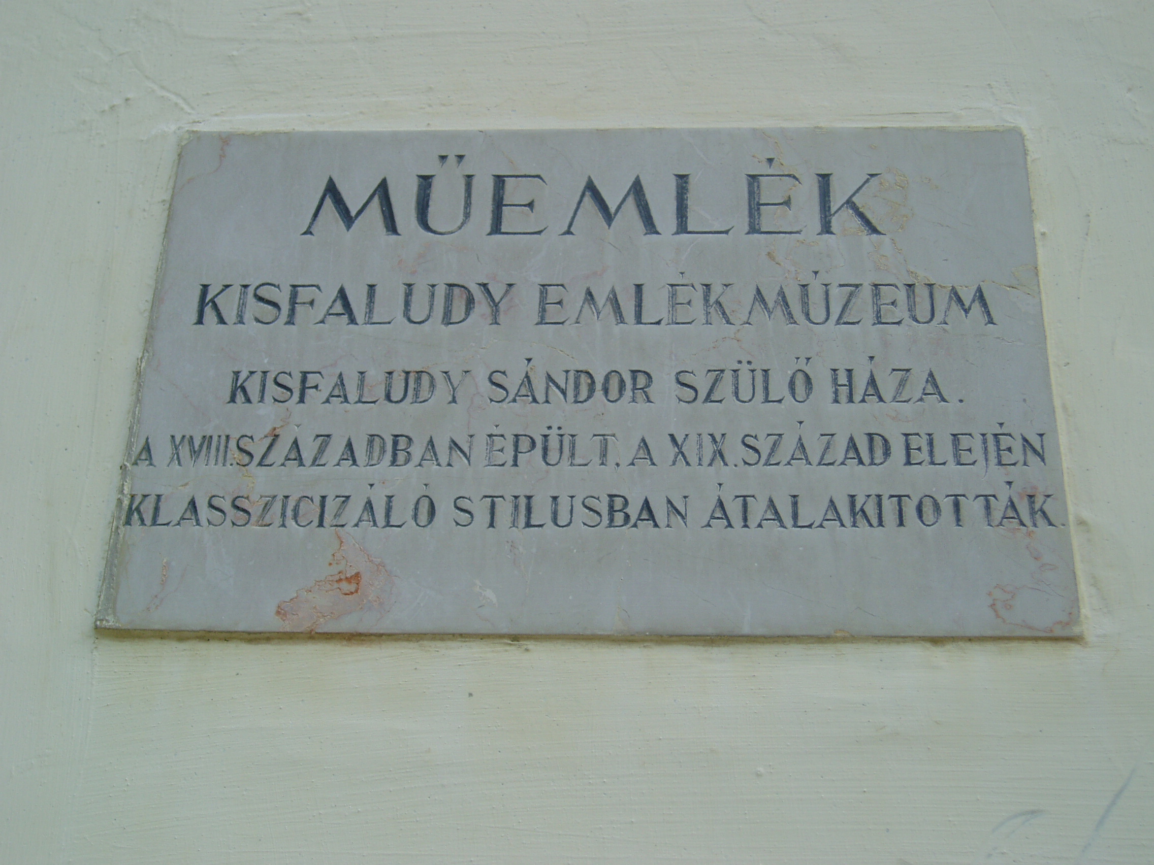 Nyilvános 1144 | 1789 | Sümeg, Kisfaludy tér 2. | Ebben a házban, amely ma a Városi Múzeum otthona, született és halt meg Kisfaludy Sándor. A XVII. században épült ház eredetileg a Sándorffy család tulajdona volt, a Kisfaludyakra örökség útján maradt. A XIX. században klasszicizáló stílusban többször is átépítették a boltíves barokk kúriát, ittlakása idején Kisfaludy Sándor is bővíttette. A költő 1772. szept. 27-én látta meg itt a napvilágot. Hat éves volt, amikor a család Tétre költözött (Károly öccse ott született 1788-ban). Eseménydús ifjúsága volt. 1793–1796 között a bécsi testőrség tagja. Részt vett a franciák elleni hadjáratban, fogságba is esett. 1799-ben leszerelt, a következő évben feleségül vette Szegedy Rózát. A házaspár Ötvös-pusztán, majd Kámban lakott. Sümegre 1805-ben pedig költöztek, itt éltek halálukig. Miután 1832-ben elveszítette szeretett feleségét, az idős költő újra megnősült, azonban második felesége, Vajda Amália is hamarosan meghalt. Ő maga itt, otthonában hunyt el 1844. október 28-án. Sírja a sümegi temetőben van (lásd: Sümeg, Temető). Kisfaludynak volt még egy ingatlana Sümegen, egy ma is álló présház (Sümeg, Külterület XI. 200). Sok időt töltött ott is, s ott vetette papírra az inszurrekció kudarcos történetét. A házat emléktábla jelöli, mellette áll Kisfaludy tölgyfája, amelyet a hagyomány szerint a költő ültetett (sajnos, fénykép nincs róla, nem találtam meg, amikor Sümegen jártam - K. K.) A fénykép 2007 júniusában készült. Felh. irod.: Koppány Tibor - Kozák Károly: Sümeg útikalauz. Veszprém, Idegenforgalmi Hivatal, 1965 Sümegi kalauz. Sümeg, Sümegi Fórum alapítvány, 1993 Kisfaludy Sándor. Veszprém, Veszprém Megyei Múzeumi Igazgatóság. /Pannon Panteon 1./ |