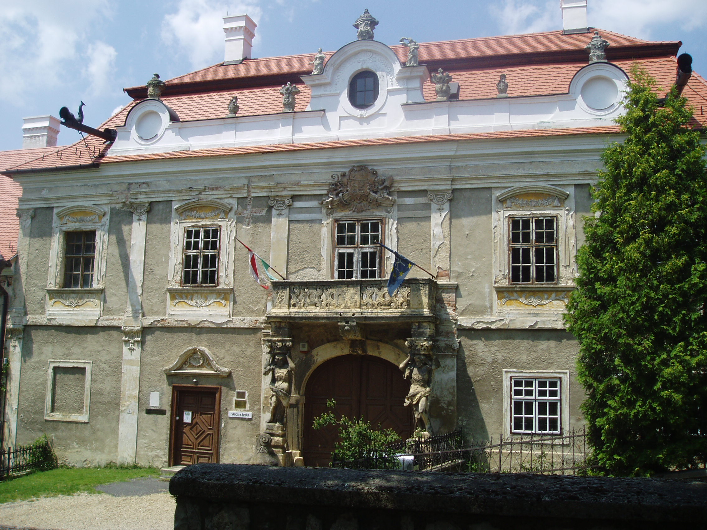 Nyilvános ![]() 728 | 1270 | Sümeg, Szent István tér 10. Püspöki palota | A város egyik legszebb épülete az 1748 és 1755 között emelt püspöki palota. Építtetője Padányi Bíró Márton, aki 1745-ben lett veszprémi püspök, aki élete végéig nagyrészt Sümegről irányította az egyházmgye életét. Sümegen is hunyt el 1762. augusztus 16-án, 67 éves korában. Az épület a domborzati viszonyokat követve egy részében földszintes, nagyobb részében viszont emeletes. Középen a barokk építészet szabályai szerint kiemelt, díszesebb, az íves főkaput tartalmazó épületrész látható. A főkapu felett lévő faragott kőmellvéd erkélyt Atlasz-figurák tartják. A főpárkány alatt helyezték el az építtető püspök gazdagon díszített címerét. Az épület ebédlőjében és kápolnájában a falképek Vogl György, a stukkók Antonio Orsatti 1750-ben készült barokk stílusú alkotásai; a szobák stukkódíszítése és falburkolata szintén barokk stílusú. A palotát 1830 körül klasszicista stílusban átalakították. A fénykép 2007 júniusában készült. Felh. irod.: Koppány Tibor - Kozák Károly: Sümeg útikalauz. Veszprém, Idegenforgalmi Hivatal, 1965 Látnivalók Veszprém megyében. Miskolc, Well-PRess, 2004 Sümegi kalauz. Sümeg, Sümegi Fórum alapítvány, 1993 Hőgyész László: Sümeg évszázadai. Veszprém, 1989 |
