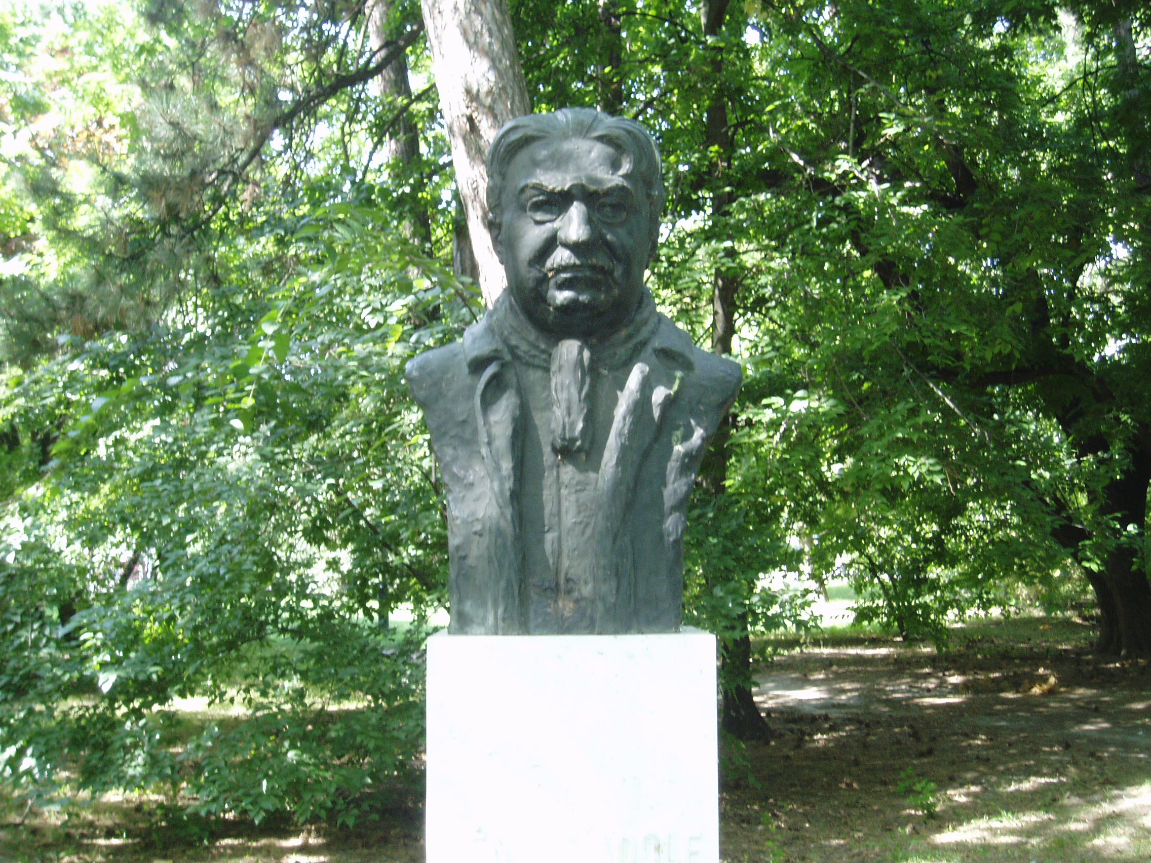 Nyilvános 1121 | 1684 | Kecskemét, Katona József park: Fényes Adolf szobra | A Vasútállomás közelében levő parkban alakították ki Kecskemét panteonját. Fényes Adolf (1867-1945) kecskeméti születésű festőművész szobra Petri Lajos alkotása. A fénykép 2006 augusztusában készült. Felh. irod.: Heltai Nándor: Kecskemét. Kecskeméti Lapok, 1998 |