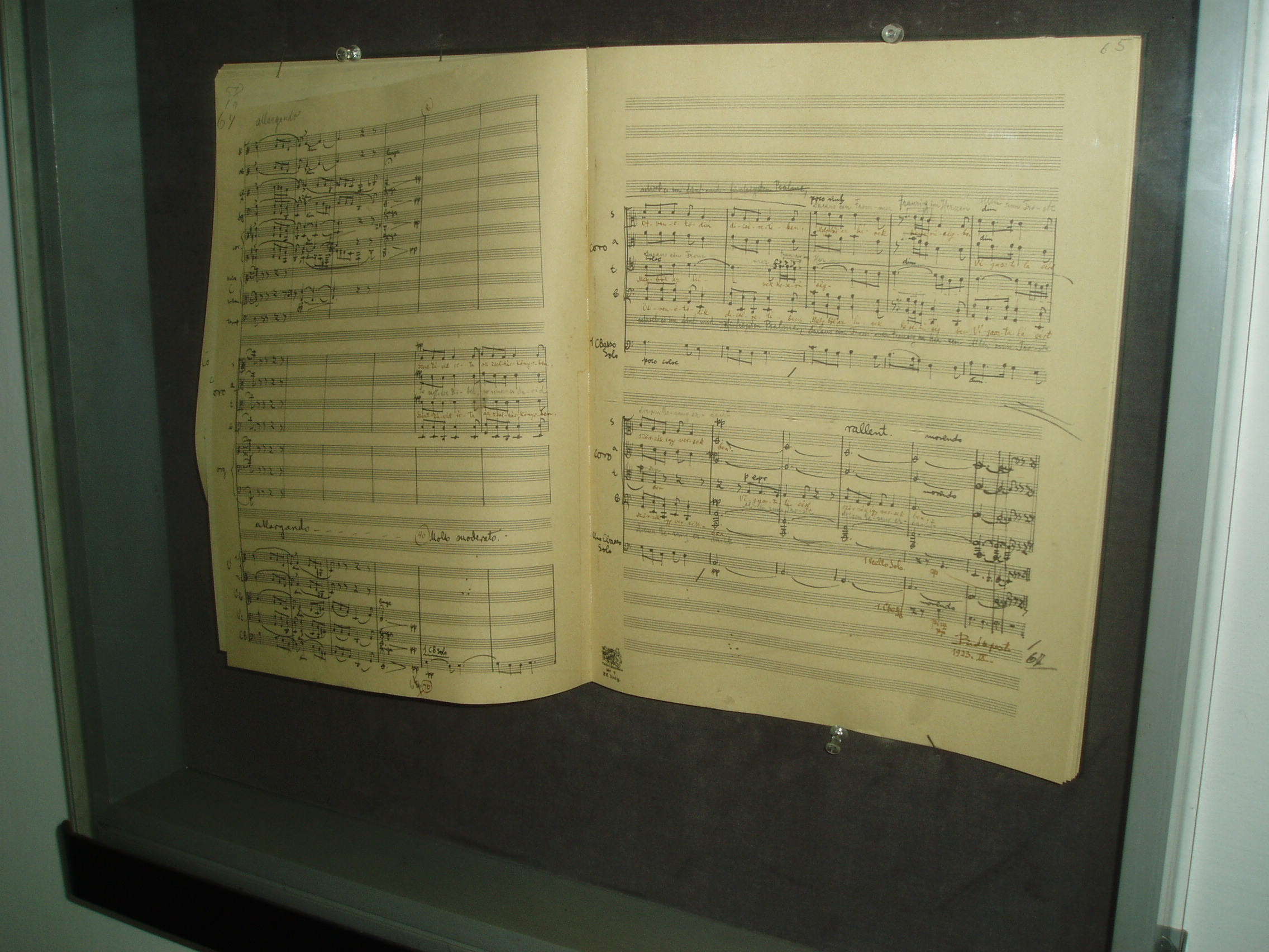 Nyilvános 1149 | 1678 | Kecskemét, Kéttemplomköz 1. Kodály Intézet | A kecskeméti születésű Kodály Zoltán zenepedagógiai törekvéseit és nevelési rendszerét az egész világra kisugárzó Kodály Zoltán Zenepdagógiai Intézet otthona középkori épületrészek és alapfalak felhasználásával ferences kolostornak épült 1702–1736 között. Az épületet Kerényi József tervei szerint 1975-ben alakították át az újonnan alapított Kodály Intézet céljaira. A ragyogó átalakítás az új intézmény igényeit és a műemléki környezet minél teljesebb megóvását egyaránt figyelembe vette. Az 1980-as évek elején — ugyancsak Kerényi József tervei alapján — új szárnnyal bővítették, amely irodáknak, tantermeknek, a zenei szakkönyvtárnak és az audiovizuális stúdiónak ad helyet. Mint az intézmény honlapján is olvasható, a Kodály Intézet a magyar zenepedagógia világszerte ismert és elismert műhelye. Kodály zenei nevelési koncepciójának elméleti és gyakorlati oktatására továbbképzéseket szervez magyar zenetanárok, valamint éves tanfolyamokat külföldi szakemberek számára. A földszinti folyosókon a nagyközönség számára is látogatható állandó Kodály–kiállítást rendeztek, amelyet alkalmankét időszaki tárlatok egészítenek ki. A képen a kiállítás egyik kincse, a Psalmus Hungaricus kéziratos partitúrája látható. A kolostor egykori refektóriuma ma kiváló akusztikájú hangversenyterem. A kerengő által közrefogott belső udvaron is gyakran rendeznek nyári koncerteket. A fénykép 2006 augusztusában készült. Felh. irod.: Heltai Nándor: Kecskemét. Kecskeméti Lapok, 1998 www.kodály-inst.hu |