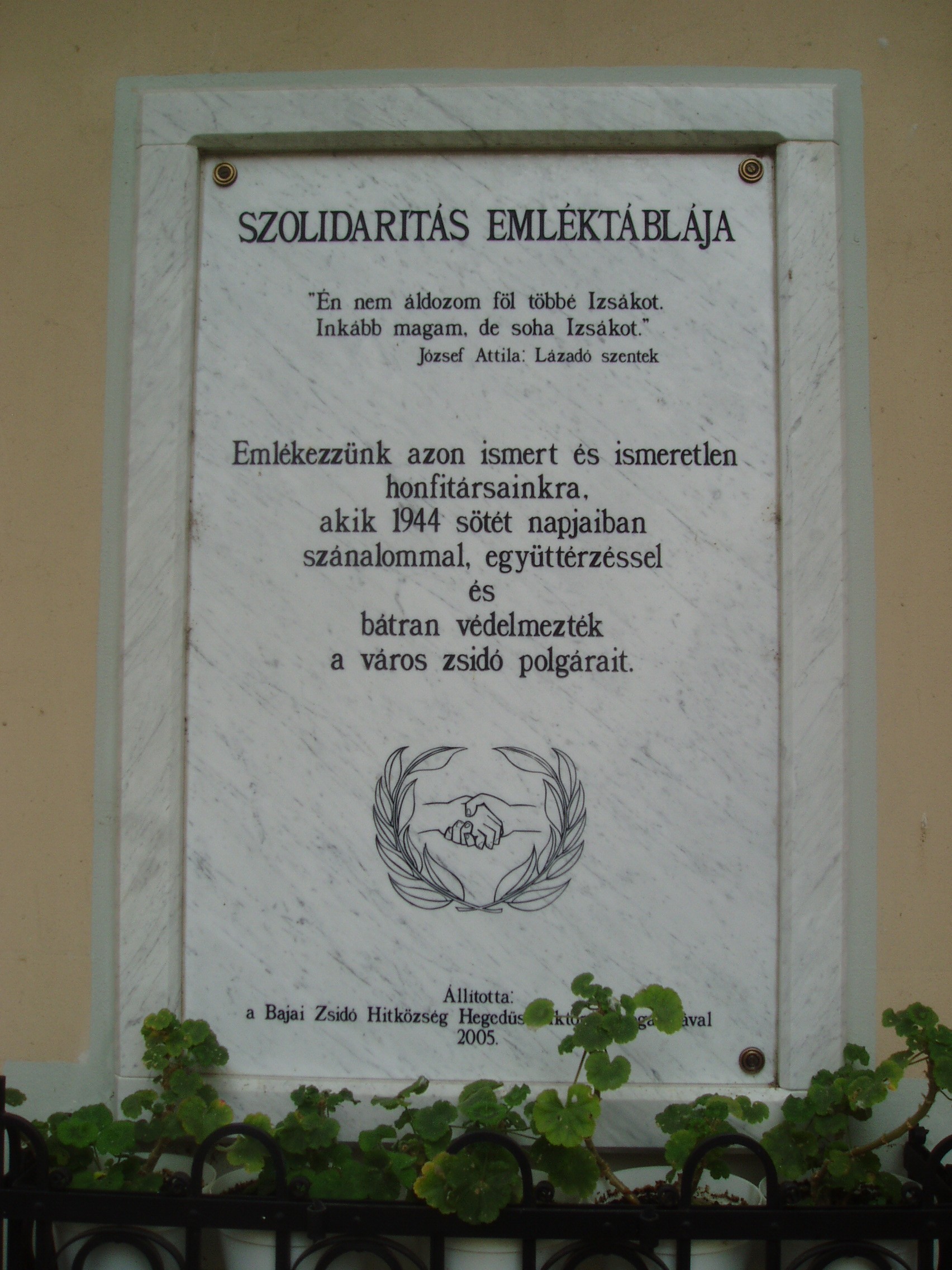 Nyilvános 1040 | 1589 | Baja, Munkácsy utca 19. Zsinagóga - Ady Endre Városi Könyvtár | A nemes arányú, későklasszicista zsinagóga az 1840-es években épült Frey Lajos tervei alapján annak a korábbi imaháznak a helyére, amely a várost sújtó nagy 1840-es tűzvészben leégett. Az épületet az 1980-as években újították fel. 1985 ősze óta az Ady Endre Városi Könyvtár otthona. A hajdan virágzó bajai zsidó közösség, amely a bírói intézmény megszűnése után a város első polgármesterét, de egy időben a berlini és a müncheni főrabbit is adta, a második világháború alatt gyakorlatilag megszűnt. A háború és a koncentrációs táborok borzalmait túlélők a kert bejárattal szemben lévő szögletében 1947-ben megépítették a mártírok emlékfalát, melynek márványtábláin több, mint ezer elhurcolt bajai zsidó neve szerepel. Minden évben, május utolsó vasárnapján gyász-istentiszteletet tartanak, így hajtva fejet a közösség emléke előtt, s osztozva a megmaradtak fájdalmában. A fénykép 2007 októberében készült. Felh. irod.: www.baja-aevk.hu |