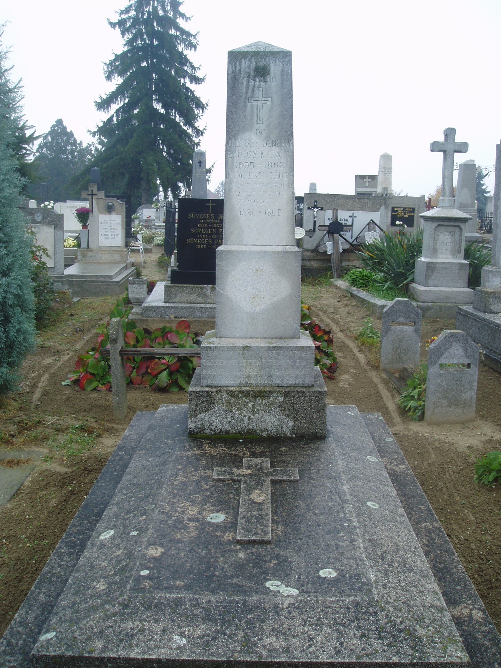 Nyilvános 1116 | 1915 | Baja, Rókus utca: Rókus temető - Allaga Géza sírja | A temetőkápolna közelében van Allaga Géza zeneszerző, karmester, cimbalomművész sírja. Az 1841-ben Óbecsén született zenész kisgyermek korában költözött szüleivel Bajára. Itt járt gimnáziumba, s kezdett zenével foglalkozni. A bécsi zeneakadémián végzett tanulmányai után színházaknál dolgozott, népszínművekhez írt dalokat. 1870-től a bajai tanítóképzőben tanított, de hamarosan a fővárosba költözött, s a Nemzeti Színház, majd az Operaház zenekarának első gordonkásaként működött. 1880-tól kezdett el a cimbalommal foglalkozni olyan eredményesen, hogy felkeltette Liszt Ferenc figyelmét is, s a Nemzeti Zenedében cimbalom tanszéket létesítettek számára. Idős korában visszatért Bajára, egyik fivére házában élt. Családi problémák és gyógyíthatatlan betegsége miatt 1913 augusztusában öngyilkos lett. A fénykép 2007 októberében készült. Felh. irod.: Herencsár Viktória: Cimbalmos ősök nyomában I. Allaga Géza. Bp. szerzői kiadás, 2001 Gál Zoltán : A cimbalom atyjának nevezték. = w.bacskaisport.hu |