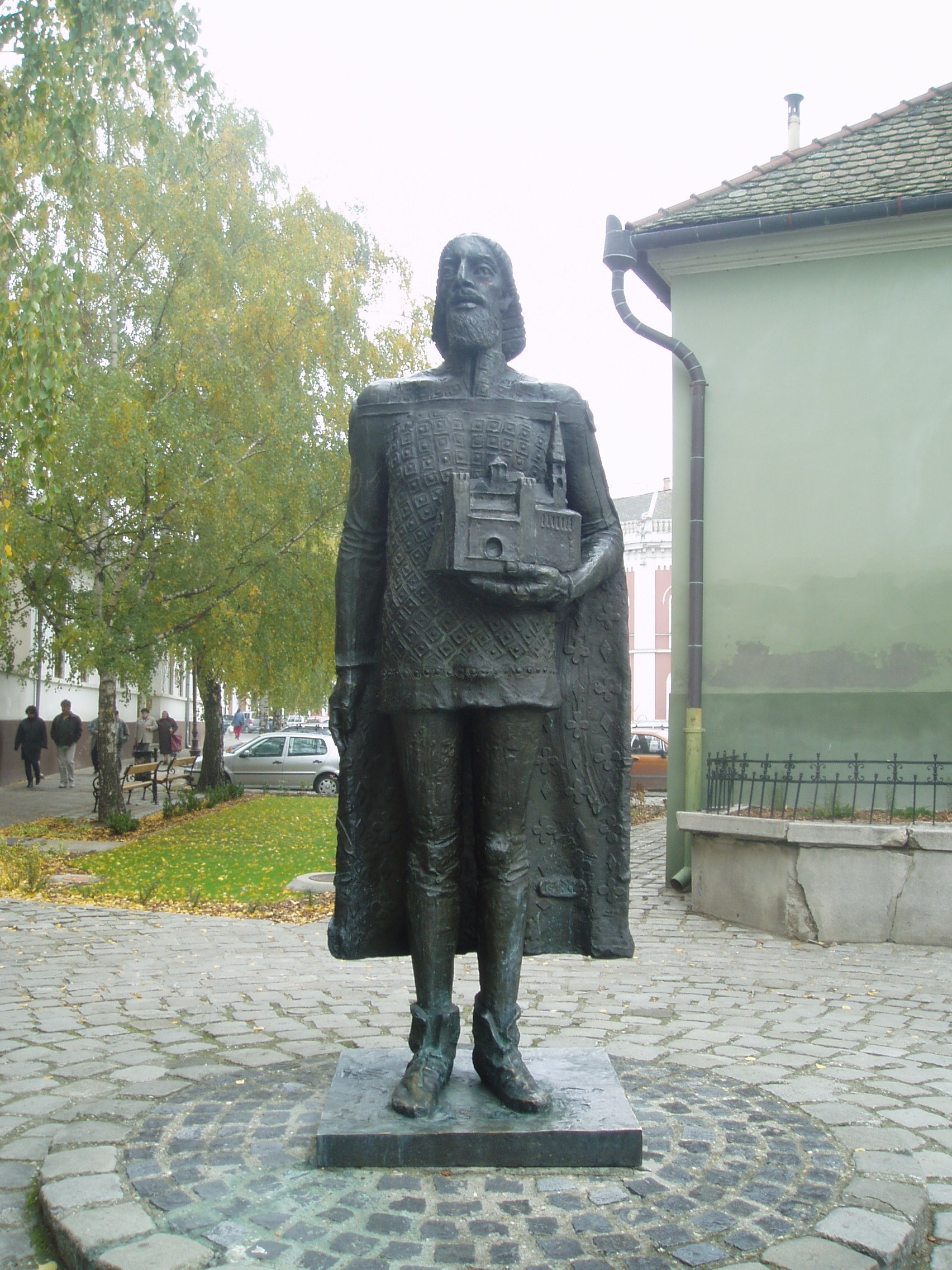Nyilvános 1093 | 1723 | Baja, Szent Imre tér 5. III. Béla szobra | A gimnázium előtt 1986-ban állították fel a névadó III. Béla bronzszobrát, Kő Pál alkotását. Az 1757-ben alapított egykori ferences iskola 1879-től a ciszterci renddé lett. Ezután vette fel III. Béla király nevét, aki a cisztereket letelepítette Magyarországon. A fénykép 2007 októberében készült. Felh. irod.: Bálint László: A bajai III. Béla Gimnázium. Bp. Tankönyvkiadó, 1989 |