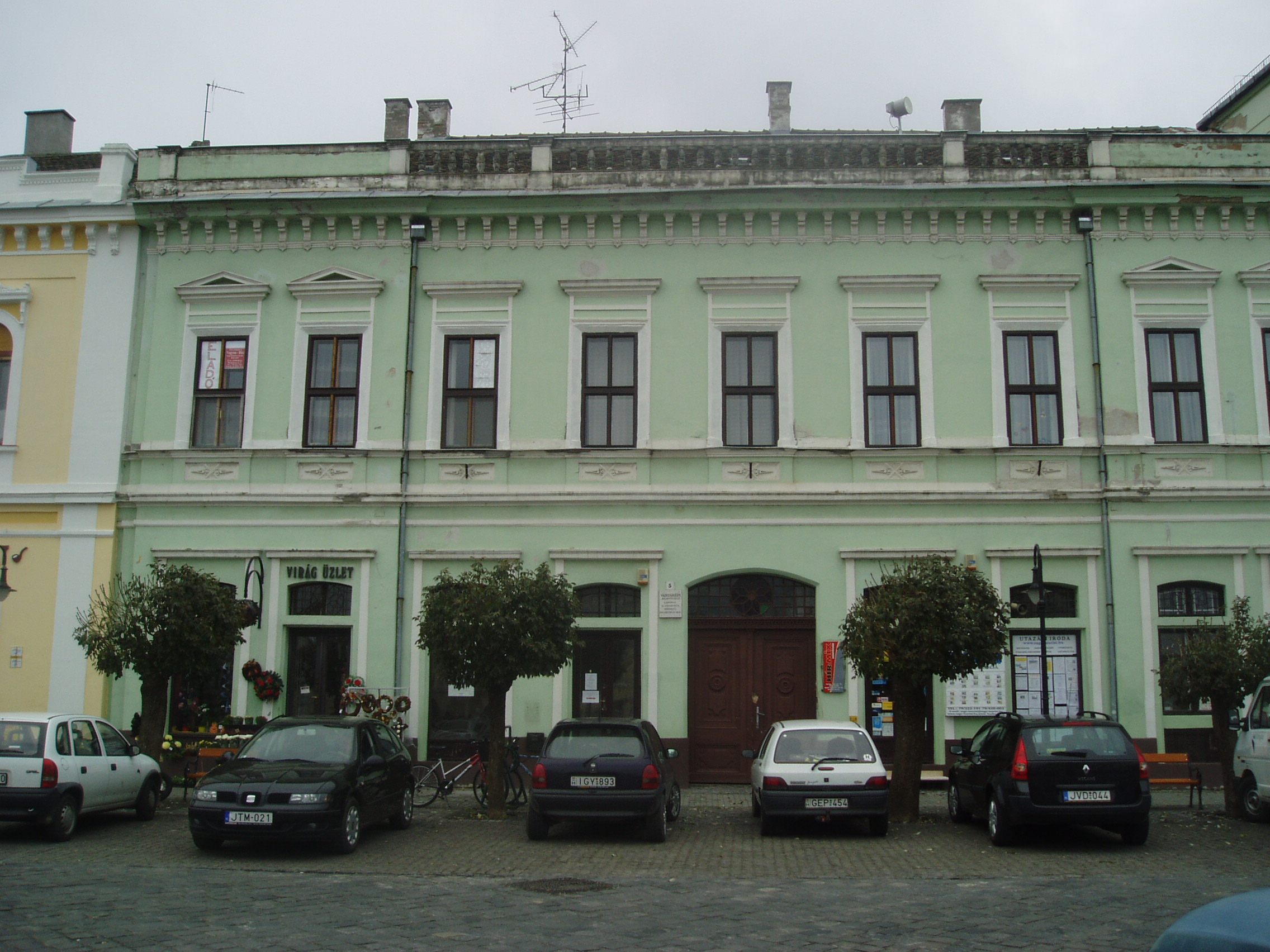 Nyilvános 1119 | 1906 | Baja, Szentháromság tér 5. | A bajai Szentháromság teret magyarországi Szent Márk térként emlegetik. Értékét nemcsak épületei, hanem kövezete is adja. A teret, amely három oldalról beépített, s nyitott negyedik oldala a Sugovicára néz, lóhere formában keresztezik az utak. A teret városképi jelentőségű épületek veszik körül. A 5. házszámú, klasszicista eredetű városi palotát 1870 körül építették újjá eklektikus stílusban. A fénykép 2007 októberében készült. Felh. irod.: Látnivalók Bács-Kiskun megyében. Miskolc, Well-PRess, 2002 |