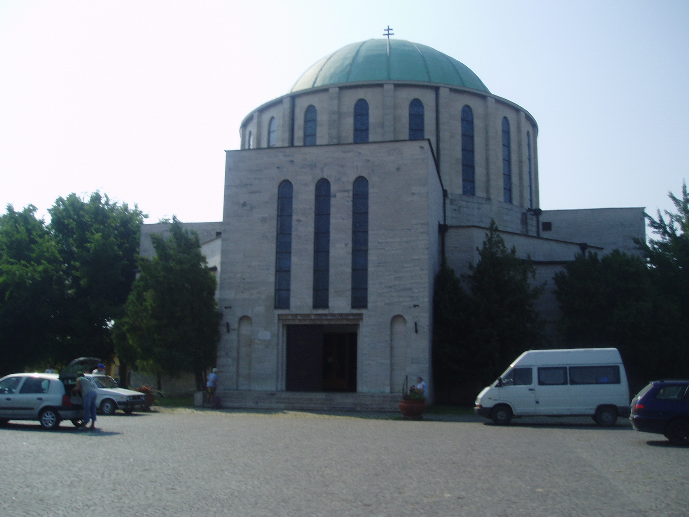 Nyilvános 1805 | 4895 | Rövid leírás | Teljes leírás (1.57 KB) | Mohács, Széchenyi tér: Fogadalmi templom A város fő terének középpontjában áll a Fogadalmi templom hatalmas tömbje. A mohácsi csata 400. évfordulójára emlékezve építették 1929 és 1940 között, Árkay Aladár és Árkay Bertalan tervei alapján. A bizánci stílust követő, historizáló stílusú templom különlegessége, hogy alapjaiba háromezer magyar község, ötvenkét város és huszonöt megyeháza udvarából felvett egy-egy kilós földcsomagokat helyeztek el 1929-ben, jelképezve ezzel az ország összefogását. Az ország első betonhéjazatú építményének kupolája 30 méter magas és 20 méter átmérőjű, a templom 3600 fő befogadására alkalmas. Az épületben lévő műalkotások megörökítik a magyar történelem legfontosabb állomásait. Az íves oldalfalakat a középkori székesegyházakéra emlékeztető, szenteket ábrázoló üvegablakok díszítik, melyek Árkayné Sztehlo Lili (1897-1959) munkái. A kupola nonfiguratív ábrákkal teli ablakai 1984-ben Michael Gaussling német üvegművész munkája nyomán készültek. A templombelső mozaikképei, melyek Kolbe Mihály (1907-1990) mohácsi festőművész munkái, színeikkel és jelképeikkel az 1526-os mohácsi csatára utalnak. A Mohácsi Boldogasszonyként ismert régi Madonna-szobor eredete a török időkre nyúlik vissza. A fénykép 2006 júliusában készült. Felh. irod.: Látnivalók Pécsett és Baranyában. Miskolc, Well-PRess, 1998 www.mohacs.hu www.vendegvaro.hu |