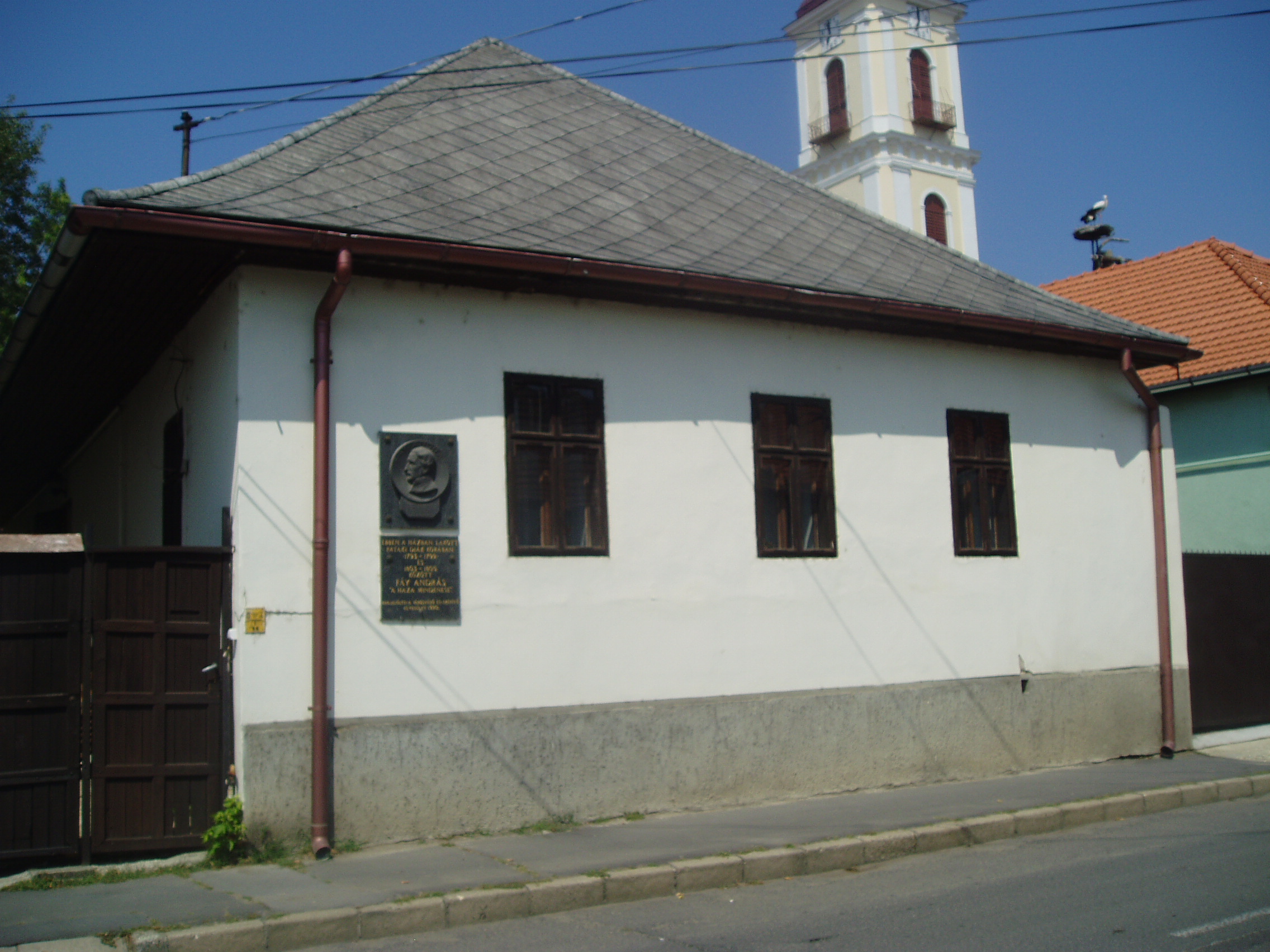 Nyilvános 1073 | 1731 | Sárospatak, Kossuth utca 22. | A homlokzatán 1990-ben elhelyezett emléktábla tanúsága szerint ebben a házban lakott pataki diák korában, 1793-1799 és 1803-1805 között Fáy András, "a haza mindenese", Alakját az Iskolakertben mellszobra idézi (lásd: Sárospatak, Iskolakert: Fáy András). A fénykép 2007 augusztusában készült. |