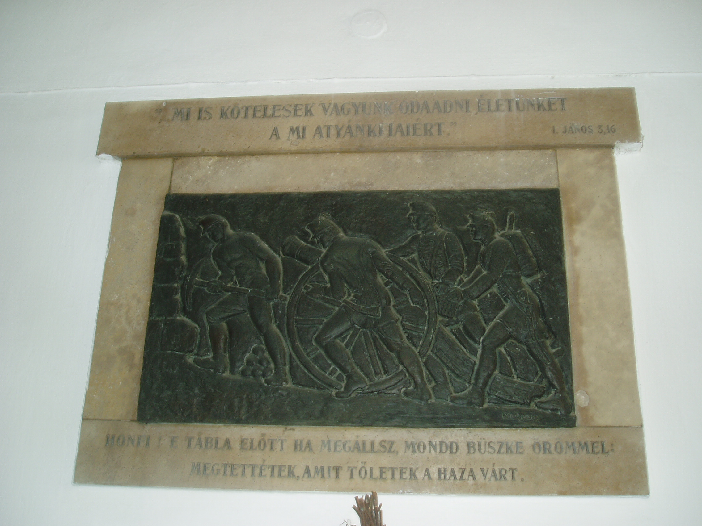 Nyilvános 1056 | 1583 | Sárospatak, Rákóczi utca 1. Református Kollégium | A kollégium főépülete, a Nagy Kollégium a Rákóczi út északi végén található, mely 1804–1814 között korai klasszicista stílusban épült. Szép ráccsal ellátott, háromíves nyílású kapuzat vezet be az un. „nagyportá”-ba, amelyet két sor vaskos pillér három hajóra oszt. Kétoldalt a falakon az iskolatörténet néhány fontosabb eseményének, illetve a kollégium nagy alakjainak bronz domborművű ábrázolásait helyezték el. A képen az 1848/49-es szabadságharcban részt vett egykori pataki diákok domborműve látható. Az 1948-ban felavatott tábla alkotója Medgyessy Ferenc. A fénykép 2007 augusztusában készült. Felh. irod.: Détsy Mihály: Sárospatak. Bp. Corvina, 1974 Látnivalók Borsod-Abaúj-Zemplén megyében. Miskolc, Well-PRess, 1995 www.sarospatak.hu/nevezetessegek |