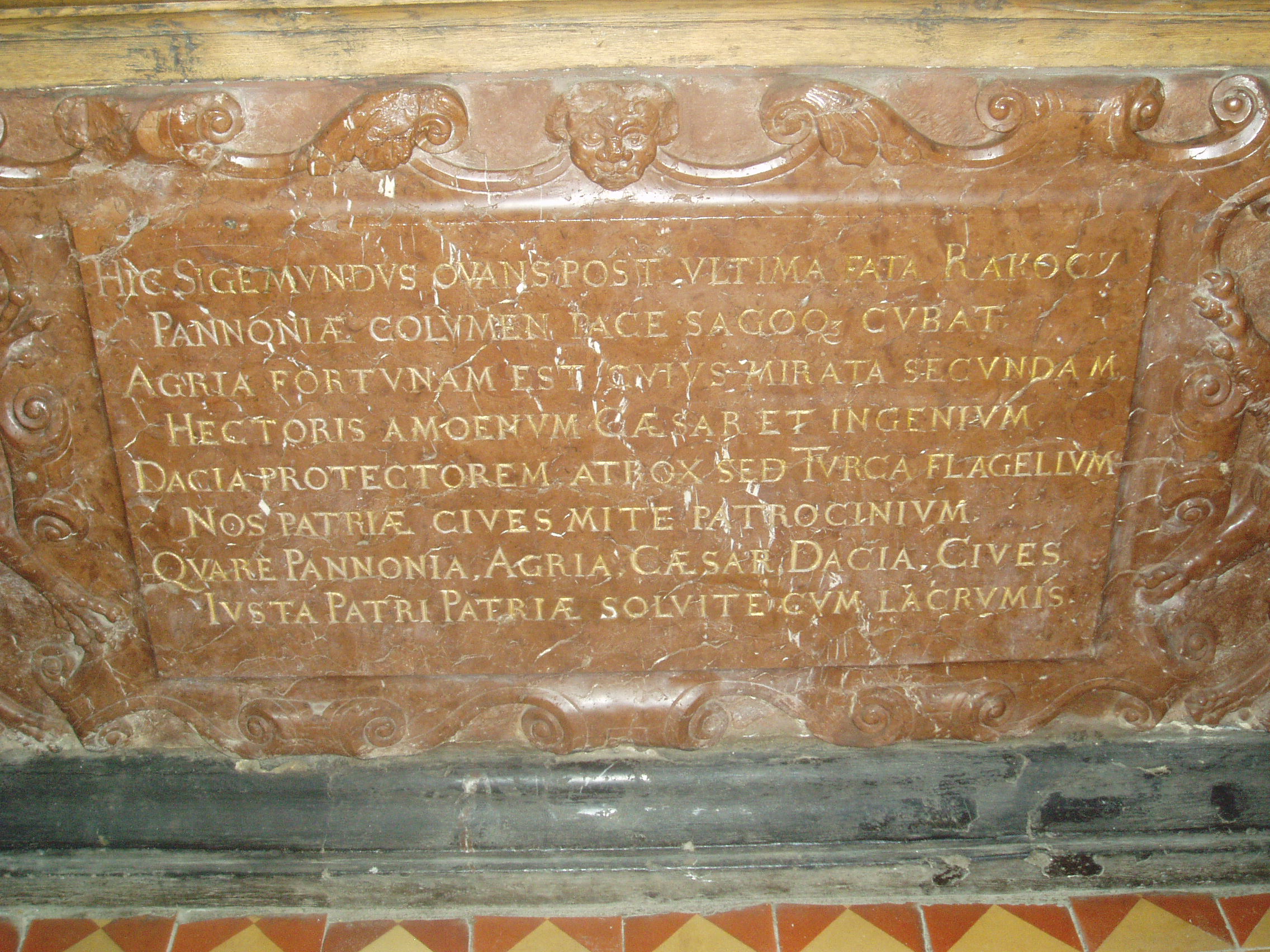 Nyilvános 1043 | 1835 | Szerencs, Kossuth tér 4. Református templom - Rákóczi Zsigmond tumbája | Szerencs legrégibb temploma a XIII. században épült eredetileg román stílusban. Az épületet 1480-ban átalakították, ekkor készült a középen álló gótikus torony. Az épületet gótikus támpillérek fogják körül. A templomot 1595-ben adományozta Rákóczi Zsigmond református hittársainak, az ő támogatásával jelentős átalakításokat is végeztek rajta. A templom nemcsak építészetileg nevezetes, hanem jelentős történelmi emlékhely is. 1605-ben az e falak között tartott országgyűlésen választották Bocskai Istvánt Magyarország fejedelmévé. A templom hajójában található Rákóczi Zsigmond (1544-1608) címerrel ékesített vörös márány szarkofágja (tumbája), amelyet 1618-ban a fejedelem három fia, György (1630-tól erdélyi fejedelem), Zsigmond és Pál készíttetett. A síremlék tetején levő latin szöveg fordítása: "Tekintetes és nagyságos felsővadászi Rákóczi Zsigmond, Borsod vármegye főispánja, a magyar király néhai lefőbb tanácsosa, először Szendrő, azután pedig Eger kapitánya és Erdély fejedelme, a magyarországi részek ura és a székelyek ispánja számára állíttatott jeles címer, akinek erénye gyakrabban híresedett el Magyarországon legnagyobb örvendezések közepette. Aki meghalt az ő kegyeletes szülőhelyén, Felsővadászon az 1608. évi december hó 5-én, midőn innen-onnan 64 évig élt. Három gyászoló fia: Rákóczi György , Zsigmond és Pál az ő legkedvesebb édesatyjuknak, aki irántuk és a haza iránt jól érdemesült." A szarkofág nyugati oldalán a következő felirat olvasható: "Tebenned reméltem Uram, hogy nem leszek porrá mindörökké! " A déli oldalon Miskolczi Csulyak István prédikátor verse őrzi Rákóczi Zsigmond emlékét (a képen ez a felirat látható): "Itt nyugszik végső lehelete után a békében és háborúban győzedelmes Rákóczi zsigmond, Magyarország oszlopa, akinek Eger csodálta szerencséjét, a császár fővezérének kies lángelméjét is, Erdély oltalmazóját, a kegyetlen török pedig ostorát, mi honfiak az ő kegyes atyai indulatát. Azért Magyarország, Eger, császár, honfiak, érdemihez illően fizessetek könnyeitekkel a haza atyjának." A síremlék alatt egy deszkaajtó felnyitása után lehet lejutni a kriptába. Ott található a fejedelem földi maradványait őrző urna, amelyet 1849-ben kapott adományul a város a X. zászlóalj tisztikarától. Bár 1644-ben, amikor Esterházy Miklós nádorispán csapatai megrohanták és kifosztották Szerencset, meggyalázták a fejedelem síremlékét is, Rákóczi Zsigmond koponyája megmaradt, s ma a kriptában egy kőurnában őrzik. Bizonyítéknak a koponyán található gyógyult fejsérüléseket tekintik, amelyeket az itt eltemetett személyek közül egyedül a fejedelem kaphatott. 1855. október 19-én járt a templomban, zempléni kirándulásuk alatt Arany János és Tompa Mihály. Arany a következőket írta levélben egy barátjának: "Szerencsen egy Rákóczi korabeli templomban láttuk Rákóczi Zsigmond fejedelem czímeres és feliratos márványravatalát.” A fénykép 2007 augusztusában készült. Felh. irod.: Tájékoztató feliratok a templomban www.szerencs.hu http://tokaj-turizmus.wplanet.hu/irodalmiut |