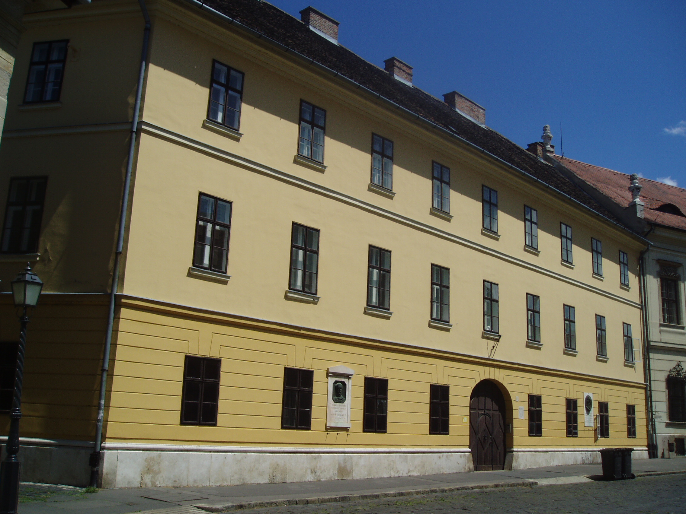 Nyilvános 1150 | 1878 | Budapest I. Táncsics Mihály utca 9. | A volt József Kaszárnyát 1810 körül emelték késő barokk stílusban. Egyes feltételezések szerint körülbelül ezen a helyen volt a XIII-XIV. században a királyi pénzverde és a Nagy Kúria, amely 1301-ben Vencel király otthonául szolgált, 1354-ben pedig Nagy Lajos király városi kúriájaként említik. A kaszárnyaépület udvarán két méter vastag falú emeletes ház áll, valószínűleg 1720 körül építették. Eredetileg puskaporraktár volt, majd a XIX. század elejétől börtönnek használták. A főépületben, az első emeleten raboskodott Kossuth Lajos 1837-től 1840-ig, itt tanult meg angolul. Táncsics Mihály két alkalommal is lakója volt a börtönnek. Először 1848. márc. 4-től 1848. március 15-ig, amikoris Petőfi vezetésével Pest ifjúsága szabadította ki, majd 1860. március 15-től 1867. március 13-ig. Mindkét fogságáról részletesen írt Életpályám c. önéletrajzi művében). Portrédomborműves emléktábláikat Berán Lajos készítette. Itt volt bebörtönözve 1839-től Wesselényi Miklós, akit három évi várfogságra ítéltek. Itt hatalmasodott el szembetegsége, ezért a csehországi grafenbergi gyógyintézetbe internálták. Czuczor Gergelyt 1849. január 18-án Riadó c. verséért tartóztatták le és ide hozták vizsgálati fogságba. Írótársai közbenjárására a börtönben is dolgozhatott az Akadémia megbízásából készülő magyar nyelv szótárán. Buda visszavételekor, 1849. május 21-én a honvédek szabadították ki. Világos után újra bebörtönözték, ekkor Kufsteinben raboskodott. A fénykép 2007 májusában készült. Felh. irod.: Somorjai Ferenc: Budapest. Bp. Medicina, 1996 Erős Zoltán: Magyar irodalmi helynevek A-tól Z-ig. 2. bőv. átd. kiad. Bp. Kis-Lant Kiadó, 1995 |