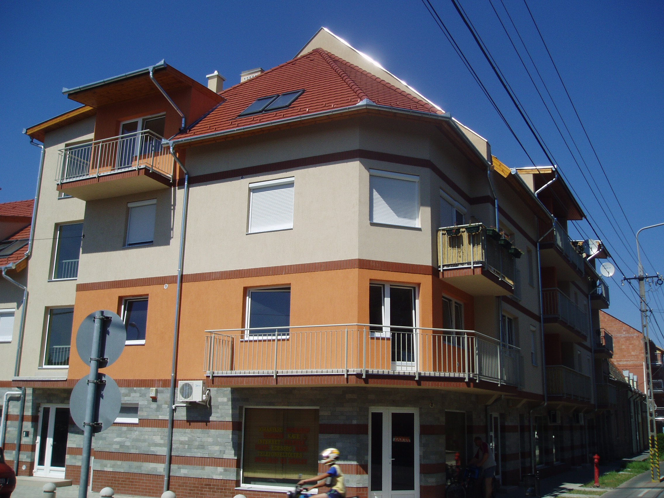 Nyilvános 1420 | 3006 | Hódmezővásárhely, Kinizsi utca 27. | A József Attila és a Kinizsi utca sarkán a közelmúltban bontották le Galyasi Miklós költő egykori lakását, amely Műverem néven vált ismertté. A helybeli és az idelátogató művészek mindig szívesen látott vendégek voltak itt. Megfordult a házban többek között a művészettörténész Lyka Károly (1879-1970), az író Illyés Gyula (1902-1983) és Veres Péter (1897-1970), az orientalista Baktay Ervin (1890-1963). Fiatal költők, Pákozdy Ferenc, József Attila és a házigazda olvasták fel, s vitatták meg költeményeiket. A Műverem köré csoportosuló társasághoz tartozott még Kohán György és Vén Emil festőművész is. Ez a csoport képezte alapját az 1943-1949 között közművelődési feladatot felvállaló Tornyai Társaságnak. Galyasi Miklós (1903-1974) költő színes egyénisége, művészetpártoló tevékenysége a Művermet irodalmi szalonná tette. Németh László Égető Eszter című regényében Galyasiról mintázta Gyenes alakját. (Korábban az eredeti házat emléktábla jelölte, amelyet sajnos nem láttam viszont a helyén álló új épületen, amikor 2007 nyarán ott jártam... K.K.) A fénykép 2007 júliusában készült. Felh. irod.: www.hodmezovasarhely.hu |