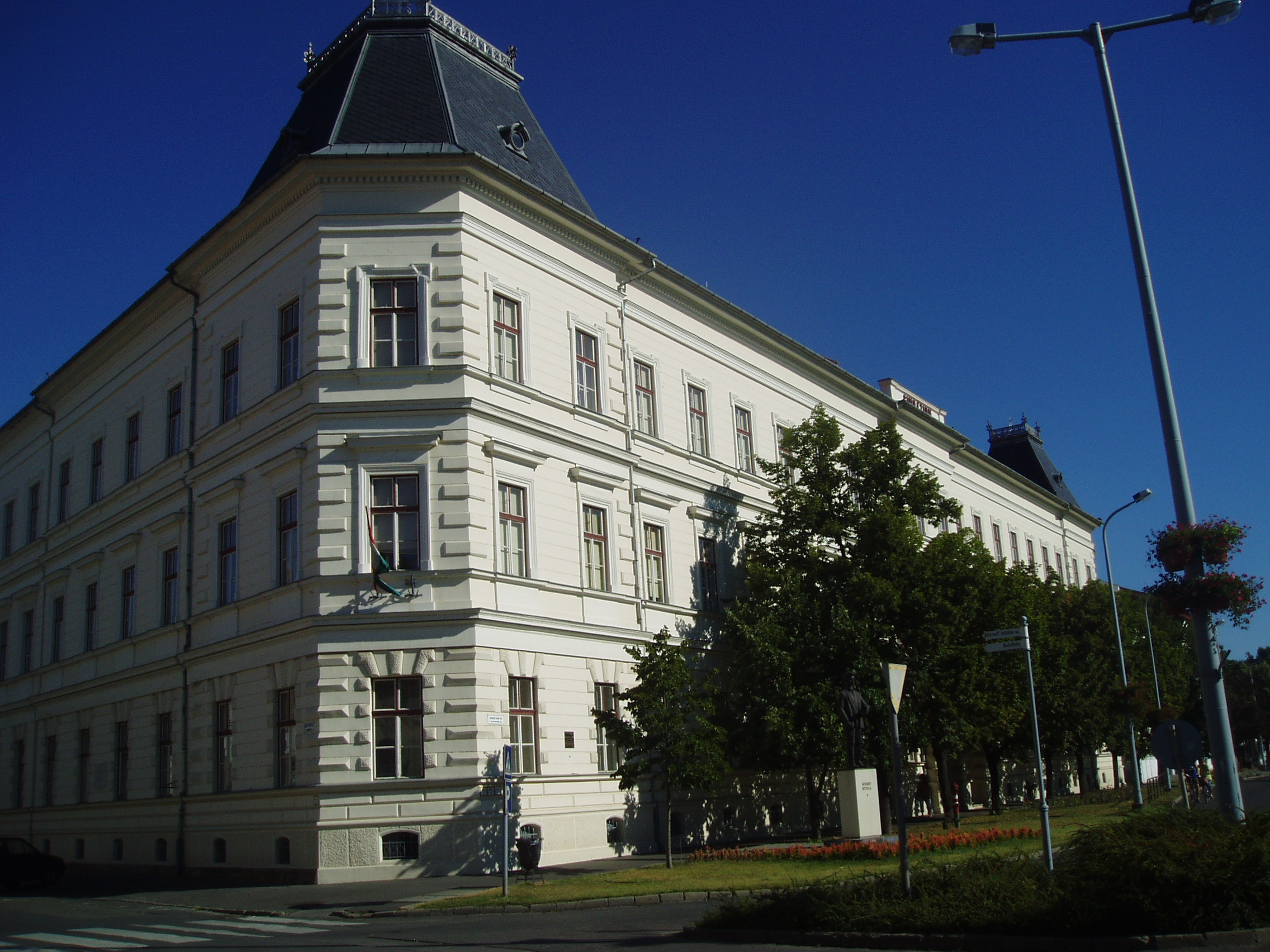 Nyilvános 1101 | 1582 | Makó, Csanád vezér tér 6. József Attila Gimnázium | A város központjából északra nyílik a sugárútszerű Csanád vezér tér. Nyugati oldalán áll a József Attila Gimnázium 1895-ben, eklektikus stílusban, Gerle Lajos tervei alapján emelt épülete. Itt tanított négy évig Juhász Gyula, itt tanult József Attila, majd Erdei Ferenc. A tizenöt és fél éves József Attila 1920 októberében érkezett Makóra. Verseire Juhász Gyula figyelt fel, akinek pártfogása révén a nyugat is közölt néhányat belőlük. Makói diák volt, amikor tizenhét éves korában Szegeden megjelent első verseskötete, a "Szépség koldusa", Juhász Gyula prófétikus előszavával: "A legnagyobb készséggel és örömmel vállalkoztam arra, hogy József Attila első verses könyvéhez előszót írjak. Ez a nagyon fiatal és nagyon tehetséges költő a legteljesebb mértékben megérdemli, hogy a figyelem feléje forduljon, hogy igaz szeretettel és reménységgel fogadja a magyar olvasóközönség és hogy a kritika se menjen el mellette közömbösen vagy ellenségesen és ne elégedjék meg vele szemben a nyomtatásban megjelenőknek rendesen kijáró vállveregetéssel. József Attila Isten kegyelméből való költő." Az épület előtt áll 2005-ben, születése centenáriumán újjáavatott szobra, a járdába ágyazottan pedig első verseskötetének bronzba öntött címlapja idézi emlékét. Egykor a gimnázium közvetlen közelében állott a Hollósy Kornélia Színház épülete. A színház lépcsőjén készült 1924. szeptember 18-án az a híres csoportkép, amelyen Juhász Gyula, Móra Ferenc és mások társaságában ott van József Attila is. Aznap a színházban három szegedi író, Juhász Gyula, Móra Ferenc és Réti Ödön egy-egy egyfelvonásosát mutatták be. A fénykép 2007 júliusában készült. Felh. irod.: Barangolások Csongrád megyében. Miskolc, Well-PRess, 1997 Nem én kiáltok. József Attila Szegeden. = www.sk-szeged.hu/kiallitas/jozsefattila |
