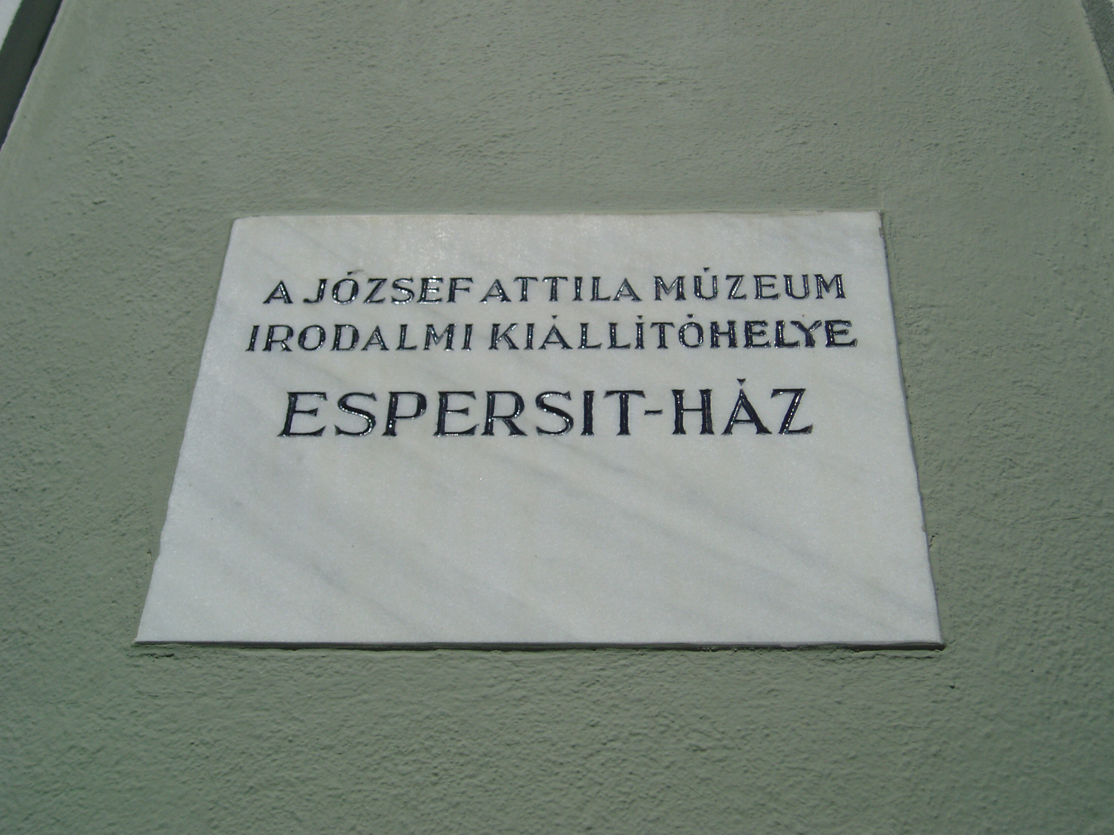 Nyilvános 1396 | 1756 | Makó, Kazinczy utca 6. Espersit-ház | Az épület, Dr. Espersit János (1879-1931) egykori háza 1979 óta Makó irodalmi emlékmúzeuma. A jónevű ügyvéd, függetlenségi, majd köztársaságpárti politikus, polgári radikális lapszerkesztő írók, költők, művészek jeles mecénása is volt. Otthonában makói tanár korában gyakori vendég volt Juhász Gyula, aki így írt: "A Músa áldja ezt a szép lakot Hol napjaim derűs örömbe folynak." A ház vendége, majd hónapokig lakója volt a fiatal József Attila. 1920 októberében, 15 éves korában érkezett Makóra, hogy tanulmányait a főgimnáziumban (lásd: Makó, Csanád vezér tér 6.) folytassa. Makói verseiből állt össze első kötete, a Szépség koldusa. A magyar irodalom harmadik jelese, aki e házban megfordult, a magát "tiszteletbeli makai"-nak nevező Móra Ferenc, akinek Georgikon című kötete ebben a házban született. A múzeum első szobája első a "Hősi bajnok" címet kapta. A látogatók megismerhetik azt a szellemi-kulturális légkört és baráti társaságot, amely József Attilát, Juhász Gyulát és Móra Ferencet, Rudnay Gyulát, Vén Emilt is befogadta. A második szoba, a "Meghitt kultúrbarlang" íróasztalán, foteljében alkotott Juhász Gyula, József Attila. A harmadik szoba a "Szent csöndben" címet kapta, itt ismerkedhetnek meg a látogatók Juhász Gyula makói éveivel, verseivel. A negyedik szoba József Attila makói gimnáziumban töltött diákéveit és makói múzsáit mutatja be "Új és paraszti füttyként indulok" címmel. (Sajnos, a múzeumbelsőben nem lehetett fényképezni, pedig végignézése egyik legnagyobb múzeumi élményem volt! - K.K.) A fénykép 2007 júliusában készült. Felh. irod.: Barangolások Csongrád megyében. Miskolc, Well-PRess, 1997 www.mfm.u-szeged.hu/mako05.html |