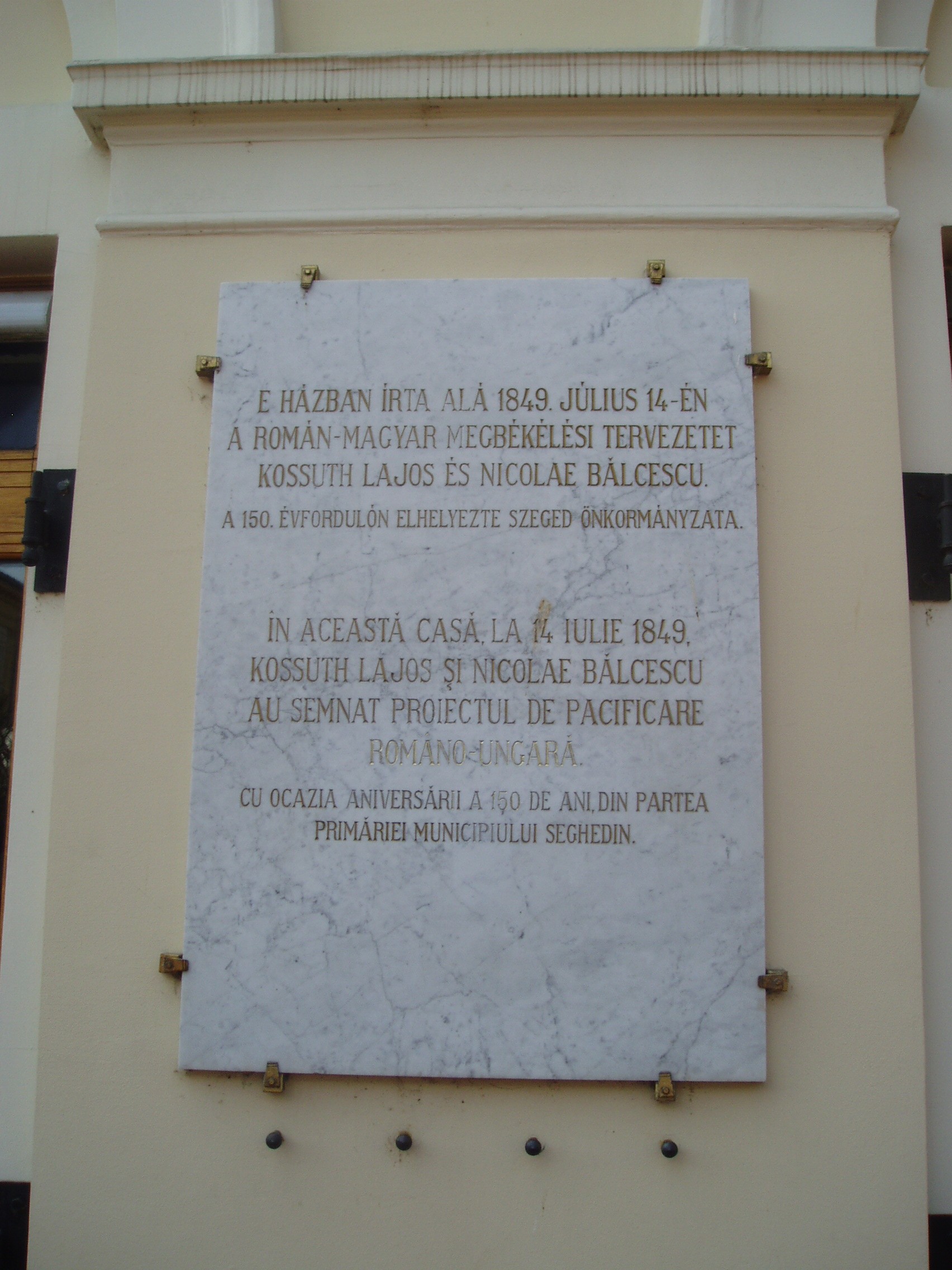 Nyilvános 1057 | 1565 | Szeged, Klauzál tér 5. Kárász-ház | A tér legszebb és legjelentősebb műemlék épülete a Kárász-ház (1845). A szegedi klasszicizmus legérettebb, egyszerű, de monumentális alkotása. Kiemelkedő szerepe van a tér kiegyensúlyozott hatásában. 1849-ben ebben a házban szállt meg Kossuth Lajos és ennek kovácsoltvas erkélyéről mondotta el július 12-én utolsó nyilvános hazai beszédét, majd 14-én itt írta alá a román - magyar megbékélési tervezetet is Nicolae Bălcescuval. A történelmi nevezetességű erkély 1918-ban is szerephez jutott. Innen jelentette be október 31-én a szegedi Nemzeti Tanács a város népének az őszirózsás forradalom győzelmét. Szólt ekkor a szegediekhez Móra Ferenc és Juhász Gyula is. Majd az események fordultával 1919. június 2-án Károlyi Gyula kormánya is itt hirdette ki megalakulását. A Kárász családból többen is beírták nevüket a város történetébe. Az alapító, Kárász Miklós (1715-1797) szegény felvidéki nemes ifjú volt, városi íródeáknak került Szegedre. 1739-ben lett Szeged főjegyzője, s egyúttal - szabályellenesen - tanácsnoka is, majd 11760-ban Csongrád megye alispánja. Vagyonát házasságával alapozta meg. A mostani ház helyén az 1760-as években építette fel kúriáját. Eléje Szentháromság-szobrot emelt, állítólag fogadalomból, mert egy kocája elvesztése miatt ártatlan kondását agyonütötte. Móricz Pál "A Kárász uraság kocája" című elbeszélésében dolgozta fel a helyi szájhagyományt. Fia, Kárász István (1745-1815) Csongrád megye alispánja, az 1790-91. évi országgyűlésen a nemesi ellenzék egyik elszánt vezére volt. Az ő fia, szintén Kárász István 1840-ben mint Csongrád megye követe az országgyűlésben Deák Ferenccel emelte fel szavát az ősiség ellen. Kárász Miklós egy másik unokája, Kárász Benő (1792-1874) építette a most itt álló Kárász-házat. Ő a megyének a reformkorban alispánja, 1848-ban főispánja, tagja a szegedi hadi választmánynak, amiért Világos után a pesti Újépület foglya volt. Kegyelem révén szabadult ugyan, de az önkényuralom alatt állandó rendőri felügyelet alatt állott. Az alkotmány visszaállításáért folytatott küzdelemben, Szeged gazdasági fejlődésében jelentős szerepet játszott, majd 1861-től 1868-ig ismét főispán lett. Lánya, Anna fiatalon meghalt, egyetlen fia, Kárász Géza (1837-1905) kezén pedig a vagyon elúszott. Amikor 1857-es szegedi látogatásakor ebben a házban szállt meg Ferenc József, az anekdota szerint a húszéves, tüzes kuruc Kárász Géza éppen akkor érkezett haza külföldről, s a kapu alatt a császári őrséget meglátva iszonyú lármát csapott, mire apja a hajdúkkal bezáratta a kocsiszínbe... A fénykép 2007 júliusában készült. Felh. irod.: Péter László: Szeged. Bp. Panoráma, 1981 |