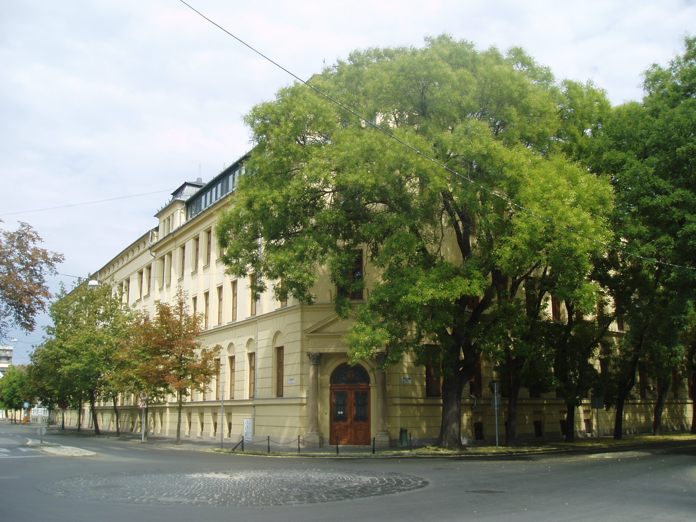 Nyilvános 1145 | 1913 | Szeged, Szentháromság utca 70-76. | Az egyházi Karolina Iskola épületében az elmúlt rendszer idején a Juhász Gyula Tanárképző Főiskola Ének–zene Tanszéke működött. Itt tanított Kardos Pál Liszt–díjas karnagy, aki 1961–1972 között a főiskola leánykarát is vezette. Kardos Pál tanári személyisége, művészi igényessége meghatározóvá vált növendékei és kollégái körében. Emléktábláját 2002. március 22-én avatták fel az épület falán. Az épületen portrédomborműves emléktábla idézi Bálint Sándor néprajztudós (1904–1980), „a legszögedibb szögedi” alakját, aki 1937 és 1941 között az itt működő Iskolanővérek tanítóképzőjének tanára volt. A fénykép 2007 júliusában készült. Felh. irod.: Tizenkét év kőben és ércben. Szeged, Önkormányzat, 2002 |