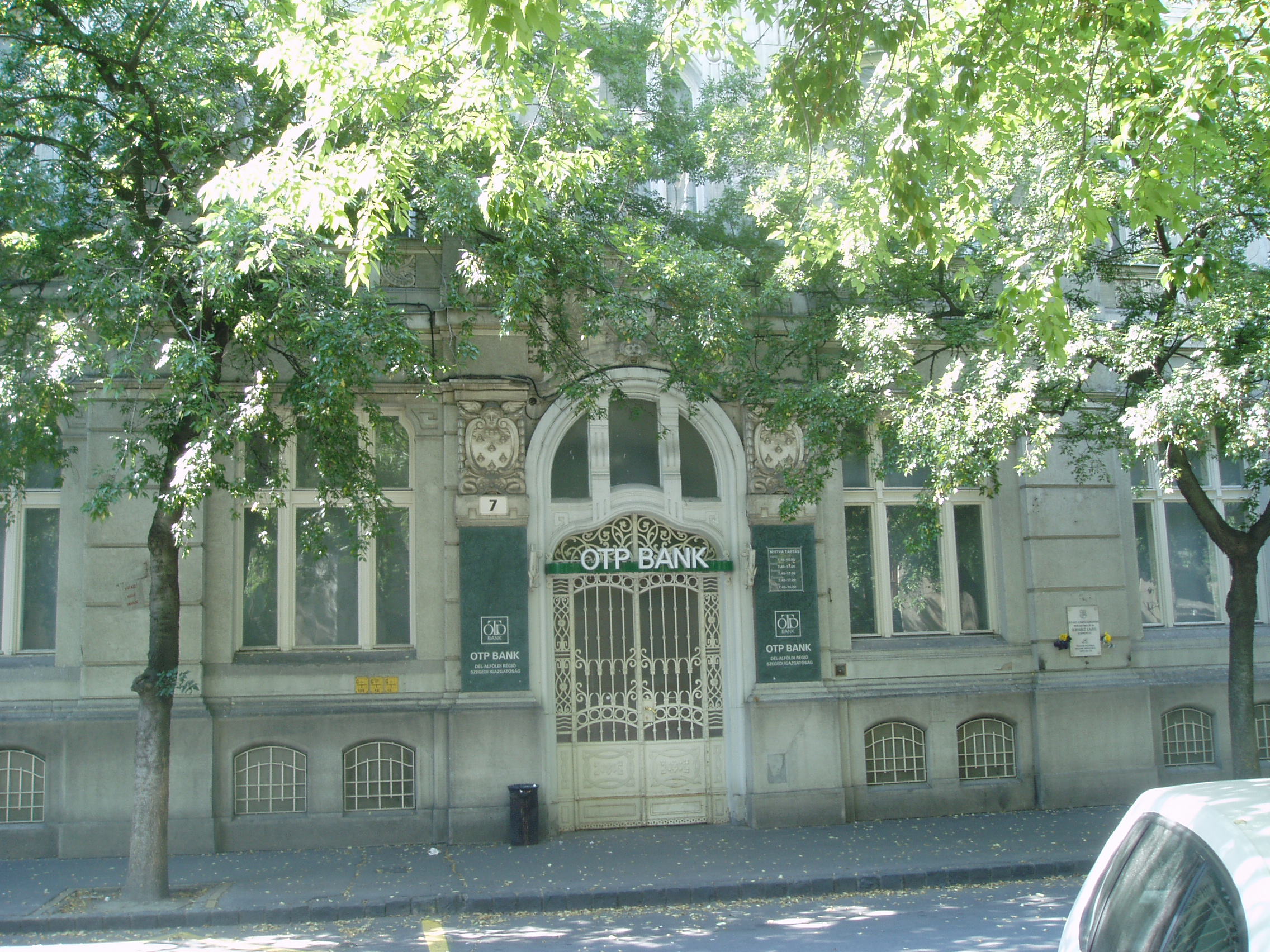 Nyilvános 1375 | 1871 | Szeged, Takaréktár utca 7. | A házon emléktábla örökíti meg, hogy ezen a helyen vált a sortűz áldozatává 1956. október 26-án Schwartz Lajos kendergyári ifjúmunkás. Szegeden a fővárosi események hatására október 26-ára az egész város mozgásba lendült. Az előző nap a Széchenyi térre meghirdetett nagygyűlést betiltották, a teret katonai kordonnal vetették körül. A tiltás ellenére a Hungária Szálló környékén összegyűlt 30-40 ezer fős, lakosságból és diákságból álló tüntető menet a Takaréktár utcán át a Széchenyi tér felé tartott, amikor a kordont álló katonaság tűprancsot kapott. A sortűznek egy halálos áldozata és több sebesültje lett, a tüntetők nagy része mégis elvonult az Ady tér felé, a mártír halált halt 18 éves kendergyári munkás holttestével. A fénykép 2007 júliusában készült. Felh. irod.: Kecskeméti Tibor: Október 23. - Megemlékezés. = www.gdszeged.hu/hirek/cikk.html?id=_20041023unnepseg |