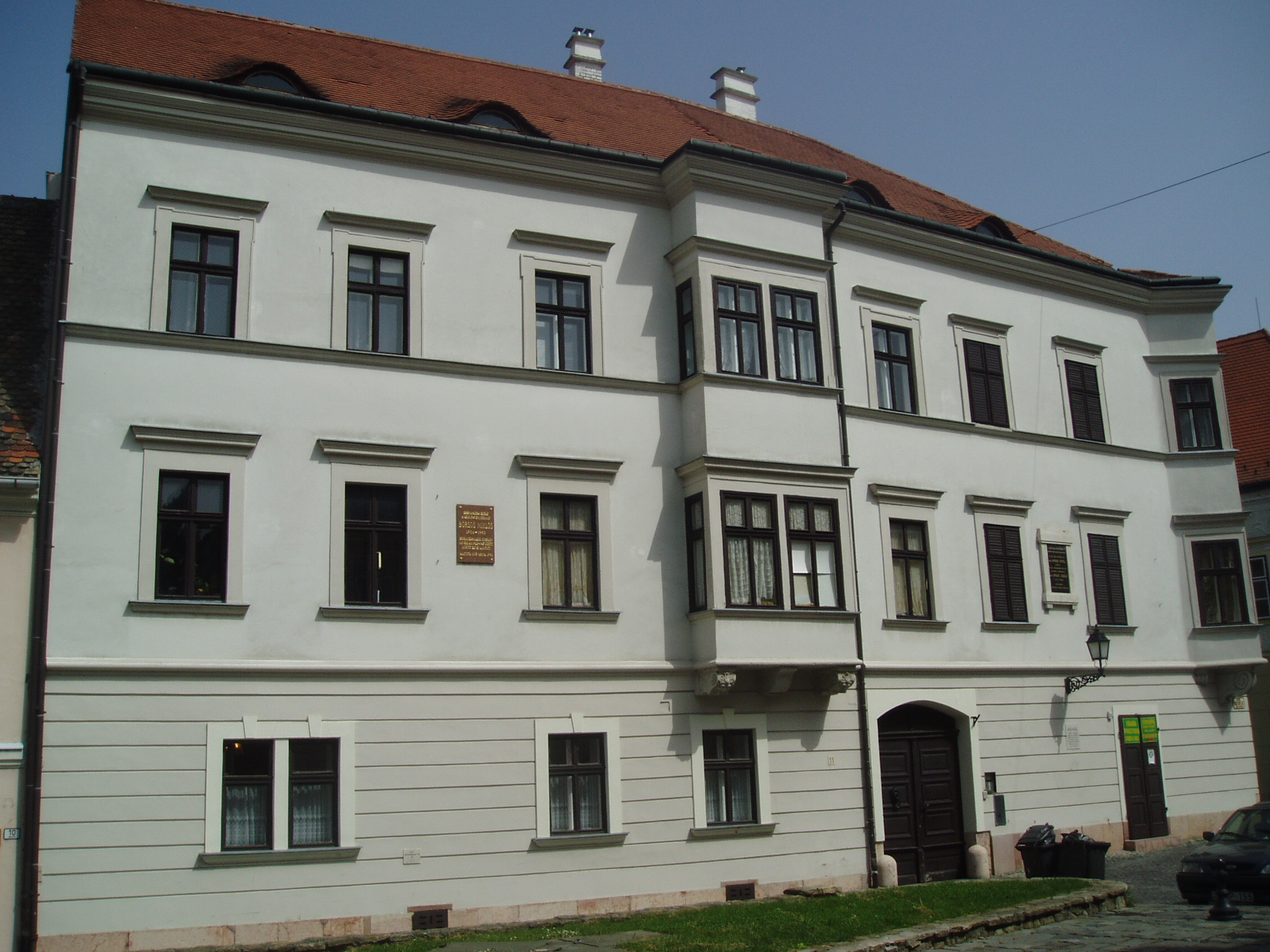 Nyilvános 1159 | 1854 | Győr, Bécsi kapu tér 4. | Európa legszebb barokk terei egyike a győri Bécsi kapu tér, amely nevét az 1860-ban lebontott nagytömegű, olaszos stílusú városkapuról kapta. A 4. számú épület a XVII. században épült, a rajta lévő műemléki tábla szerint a várkonyi Amede családé volt. Egy másik emléktábla arról tudósítja a sétálót, hogy ebben a házban élte át a város 1945-ös ostromát Borsos Miklós (1906-1990) szobrászművész, aki 1922 és 1947 között Győrben élt és alkotott (lásd még: Győr, Apor Vilmos püspök tere 2.). A felvétel 2008 május végén készült. Felh. irod.: Cziglényi László: Győr. Bp. Panoráma, 1981 |