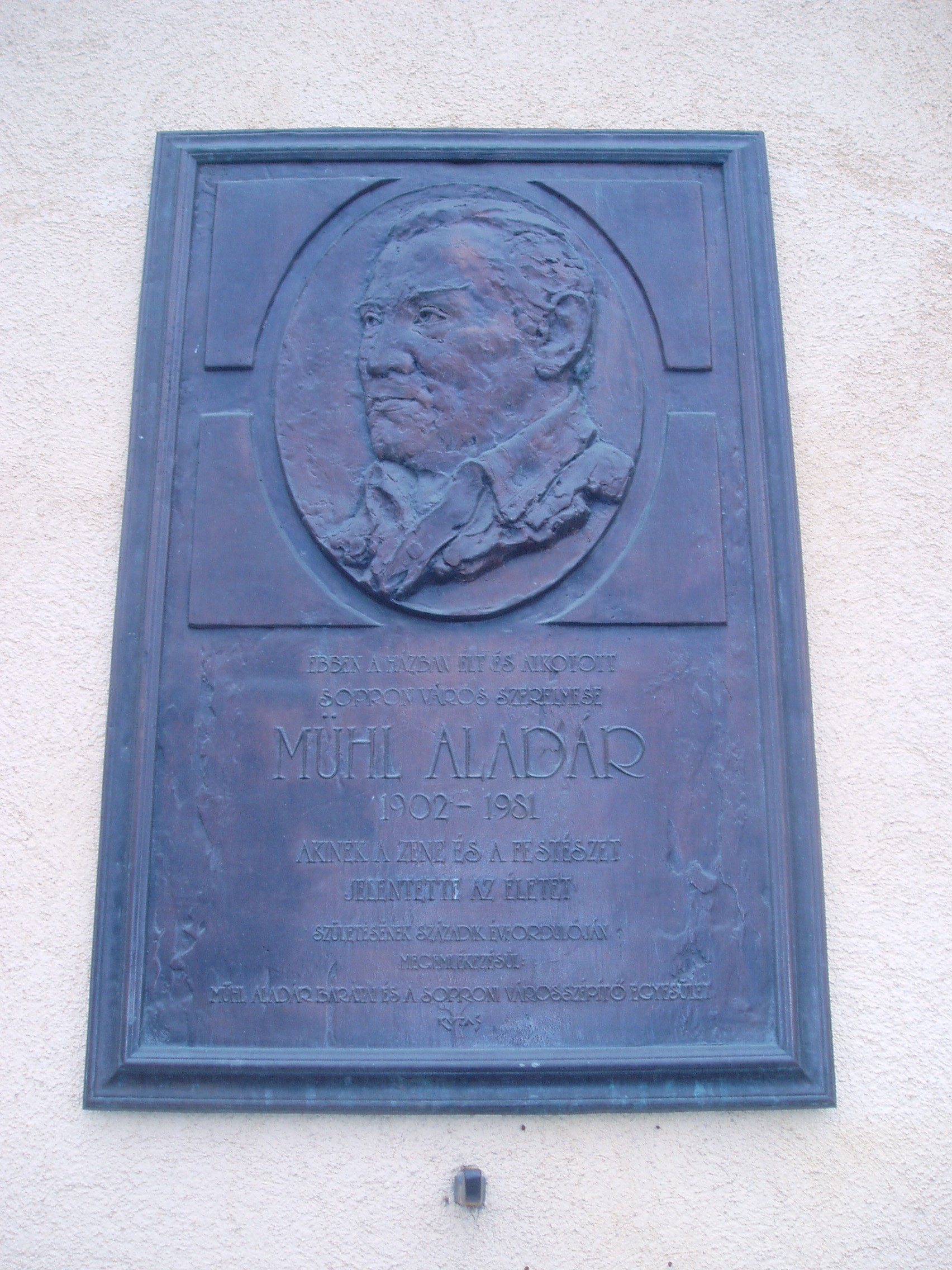 Nyilvános 1136 | 1776 | Sopron, Bécsi út 20. | Emléktáblájának tanúsága szerint ebben a házban élt Mühl Aladár festőművész (1902-1981). Sopronban született, művészetre fogékony családban nevelkedett. 1920-ban az evangélikus líceumban érettségizett, majd tanítói oklevelet szerzett. Munka mellett végezte el a Zeneakadémiát, ahol Szőnyi Erzsébet tanítványa volt. A második diploma megszerzése után a soproni zeneiskolában szolfézst és zongorát tanított. A bohém hírében álló Mühl egész életében elkötelezett közéleti ember volt: ő szervezte meg Sopronban a Kodály Zoltán módszerét követő zenei általános iskolát. Évente nyári művésztelepet szervezett, Sopronba csábítva számos kiváló művészegyéniséget. A festő Mühlnek örök szerelme volt Sopron. Első kiállításával 1926-ban mutatkozott be szülővárosában, ezt újabb önálló tárlatok követték 1935-ben, 1949-ben, 1971-ben és 1976-ban Sopronban, Győrben és Németországban is. 1977-ben Lackner emlékéremmel jutalmazták. A fénykép 2008 júniusában készült. Felh. irod.: http://cyberpress.sopron.hu/article.php?id=9735 |