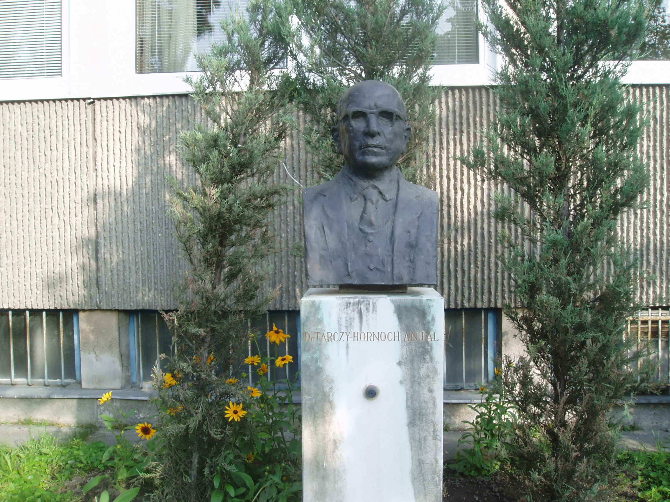 Nyilvános 1455 | 2074 | Sopron, Csatkai Endre utca 6-8. | A modern épületben a Magyar Tudományos Akadémia Geodéziai és Geofizikai Kutatóintézete működik. Az itt dolgozó mintegy 35 kutató geodéziai és geofizikai alapkutatásokban vesz részt. Homlokzatán 1990-ben avatták fel dr. Tárczy Hornoch Antal (1900-1986) emléktábláját. A bányamérnök, egyetemi tanár, akadémikus a magyar bányamérési, földmérési és geofizikai tudományok és hagyományok elhivatott hirdetője és oktatója volt. Kezdeményezésére indult meg Sopronban 1949-ben az önálló földmérőmérnök, 1951-ben pedig a geofizikus-mérnök képzés. Mellszobor is őrzi emlékét, alkotója Varga Éva. A fénykép 2008 júniusában készült. Felh. irod.: http://www.ggki.hu |
