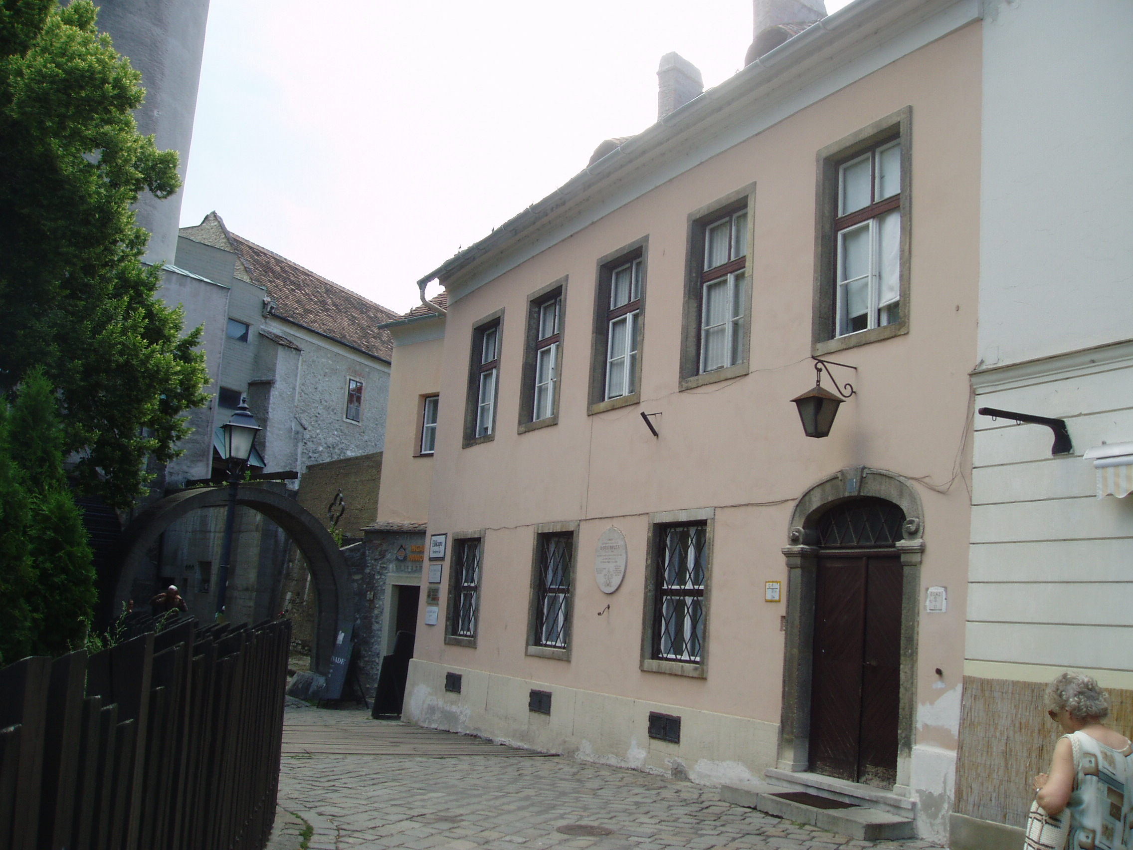 Nyilvános 1081 | 1670 | Sopron, Előkapu 3. | Sopron belvárosának főbejárata az északon nyíló Előkapu. Helye már a római korban lakott volt, majd a középkorban erődítésrendszert alakítottak itt ki. A területet a XVIII. század közepétől kezdték beépíteni lakóházakkal. A homlokzaton elhelyezett emléktábla tanúsága szerint a 3. szám alatt született Roth Gyula (1873-1961) Kossuth-díjas egyetemi tanár, az erdőművelés európai hírű tudósa. A fénykép 2008 júniusában készült. Felh. irod.: Czellár Katalin: Sopron. 3. jav. kiad. Bp. Panoráma, 2000 |