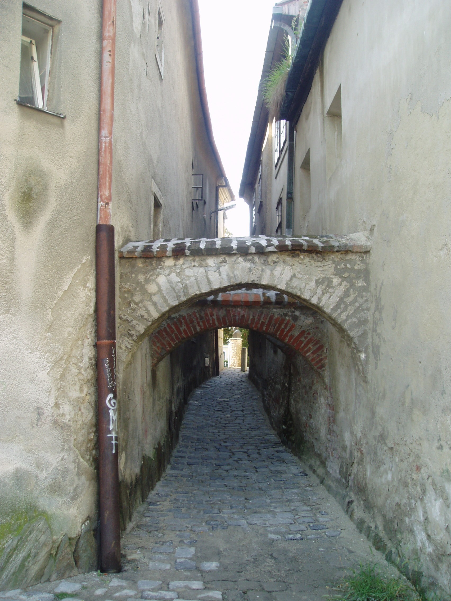 Nyilvános 963 | 2018 | Sopron, Festő köz | A Várkerület 7. számú ház előtt nyílik a hangulatos Festő köz, mely a Sopront átszelő Ikva-patakhoz vezet. Valaha erre laktak a város posztónyírói, tímárjai, kékfestői. A kis sikátor onnét kapta a nevét, hogy a kékfestők rajta keresztül vitték szárítani vásznaikat a városi Festőház padlására. A fénykép 2008 júniusában készült. Felh. irod.: Czellár Katalin: Sopron. 3. jav. kiad. Bp. Panoráma, 2000 |