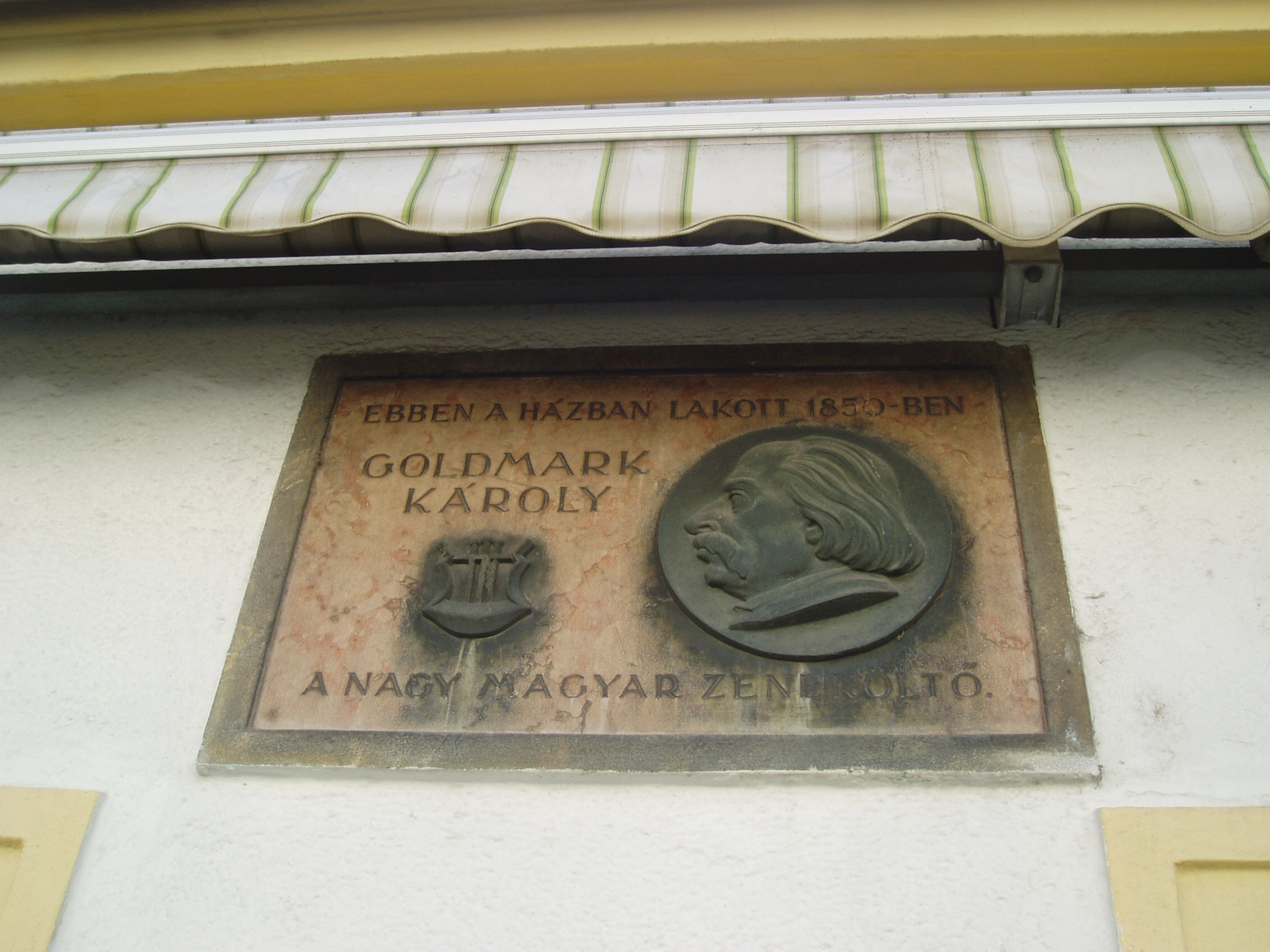 Nyilvános 1037 | 1615 | Ógabona tér 32. | Az 1700 körül épült földszintes lakóház nevezetessége, hogy fiatal muzsikus korában itt, akkor Szabó Antal soproni polgár házában lakott Goldmark Károly. A nyomorgó fiatalember a bejárati ajtó melletti picike, egyablakos kamrában húzta meg magát. A kicsi házon már a második világháború előtt is volt emléktábla, de a fasiszták eltávolították. A jelenlegi táblát, Szakál Ernő alkotását, amelyet a zeneszerző domborművű arcmása díszít, 1955-ben avatták fel. A kép 2008 júniusában készült. Felh. irod.: Czellár Katalin: Sopron. 3. jav. kiad. Bp. Panoráma, 2000 Goldmark Károly: Emlékek életemből. Bp. Zeneműkiadó, 1980 Soproni zenei élet a felszabadulást követő 10 évben. = Soproni Szemle 1956. 4. |