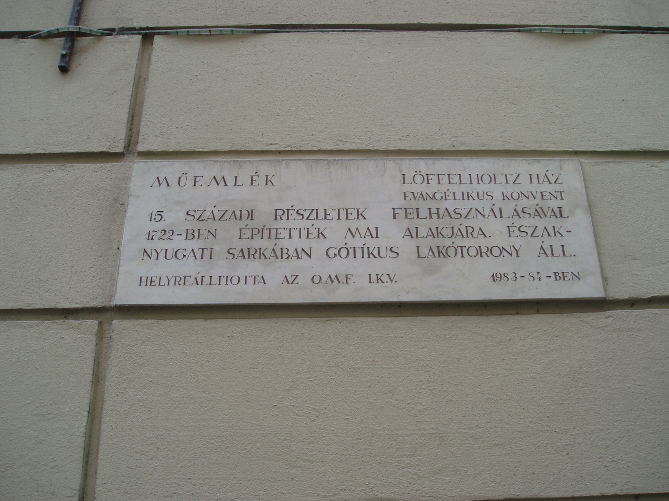 Nyilvános 1051 | 1420 | Sopron, Szent György utca 14. Evangélikus konventház. | A középkori eredetű egyemeletes barokk lakóház jelenlegi külsejét a XVIII. század első negyedének vége felé kapta. Ez volt a soproni evangélikus gyülekezet ún. Gemein–Haus épülete, azaz a konventház. Eredetileg a szomszéd házat (lásd: Sopron, Szent György utca 12.) is birtokló Eggenberg hercegné tulajdona volt, aki halálakor az evangélikus egyházra hagyta, amely később azt Löffelholtz bárónénak adta el. A báróné, aki Jókai Mór regényében, A lőcsei fehér asszonyban játszik szerepet, az ingatlant ismét az evangélikus konventre hagyományozta. Udvarában gótikus torony áll. Ebben a házban lakott Wohlmuth János (1643–1724) zeneszerző és orgonaművész. Valószínűleg ő volt a zenetanára Stark Jánosnak, egy helybeli fogadós (lásd: Sopron, Várkerület 55.) fiának. A feltételezések szerint a ma Stark–féle virginálkönyvként számon tartott kézirat táncait és egyéb kisebb darabjait Wohlmuth kottázta le a Stark–fiú számára, mintegy hangszeriskolaként. A katolikus főúr, Esterházy Pál nádor — maga is kiváló muzsikus, a Harmonia Caelestis szerzője — is rá, az evangélikus orgonistára bízta fiai hangszeres tanítását. A kép 2003-ban készült. Felh. irod.: Czellár Katalin: Sopron. 3. jav. kiad. Bp. Panoráma, 2000 Bárdos Kornél: Sopron zenéje a 16–18. században. Bp. Akadémiai Kiadó, 1984 Payr Sándor: Wohlmuth János. = Sopronvármegye, 1929. I–II |