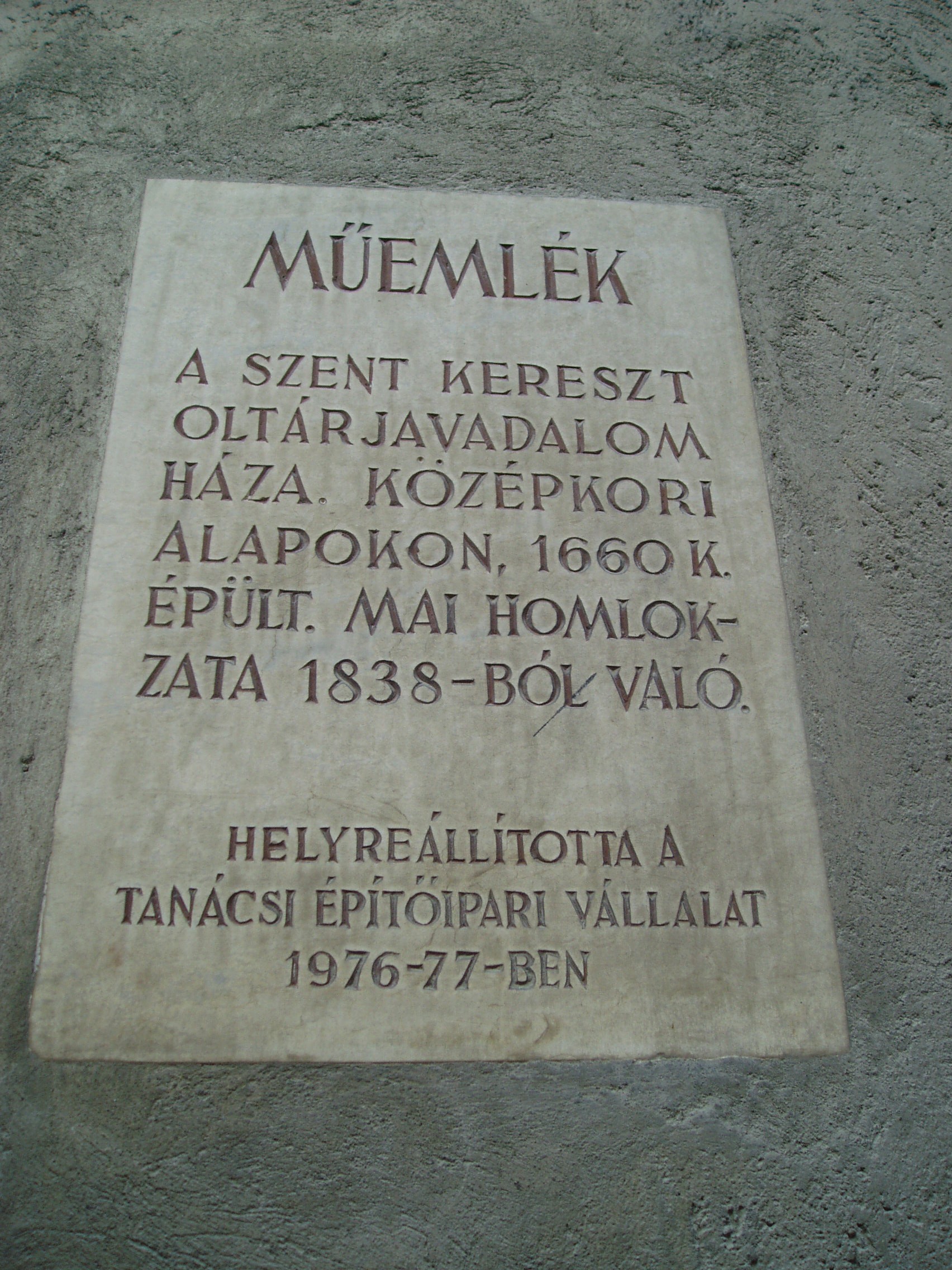 Nyilvános 1012 | 1346 | Sopron, Szentlélek utca 5. | Az egykori Szent Kereszt oltárjavadalmas ház 1660 körül épült. Mai késő klasszicista homlokzata 1838-ból származik. A kép 2008 júniusában készült. Felh. irod.: Czellár Katalin: Sopron. 3. jav. kiad. Bp. Panoráma, 2000 |