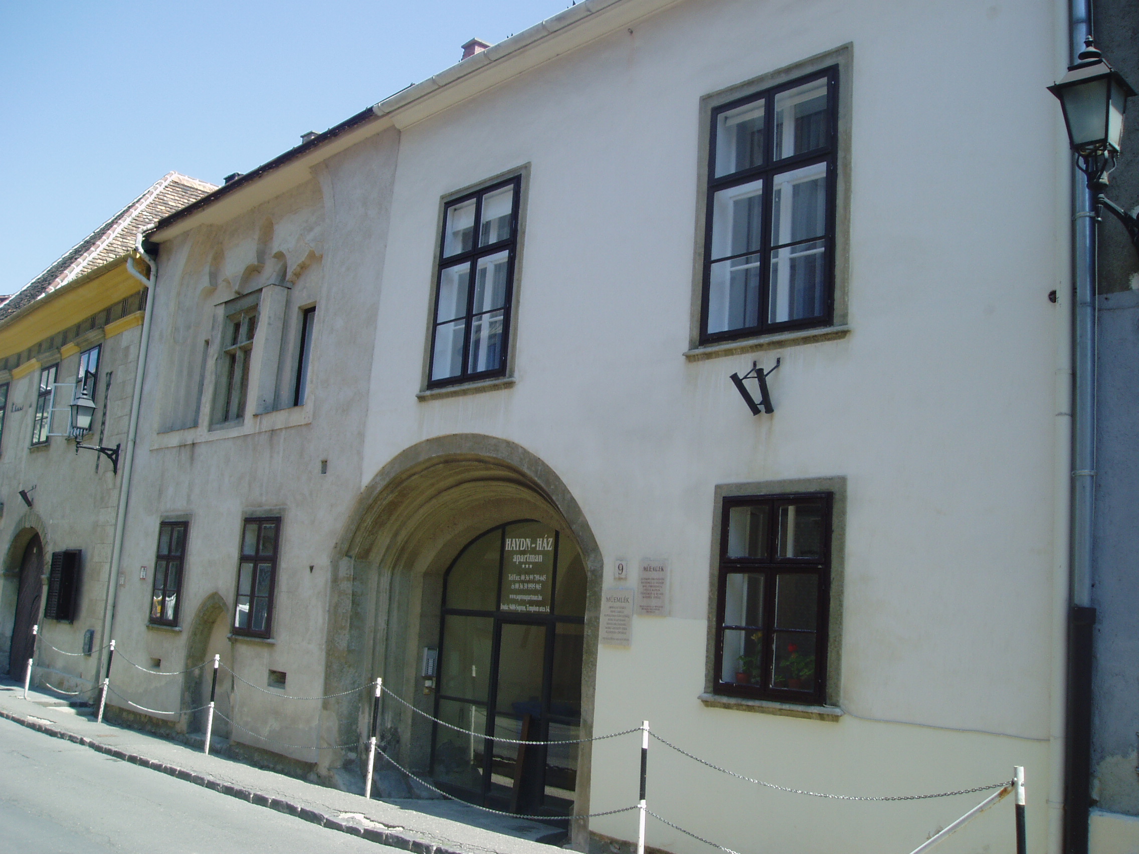 Nyilvános 1008 | 1451 | Sopron, Templom utca 9. | Az egyemeletes lakóház eredetileg a XIV. században épült, díszes kapuja a XVIII. században készült. A későbbiekben többször átalakított épület 1734 és 1782 között több magyar nemesi család birtokában volt, később Bezzegh János soproni tanácsos vásárolta meg. A kép 2008 júniusában készült. Felh. irod.: Czellár Katalin: Sopron. 3. jav. kiad. Bp. Panoráma, 2000 |