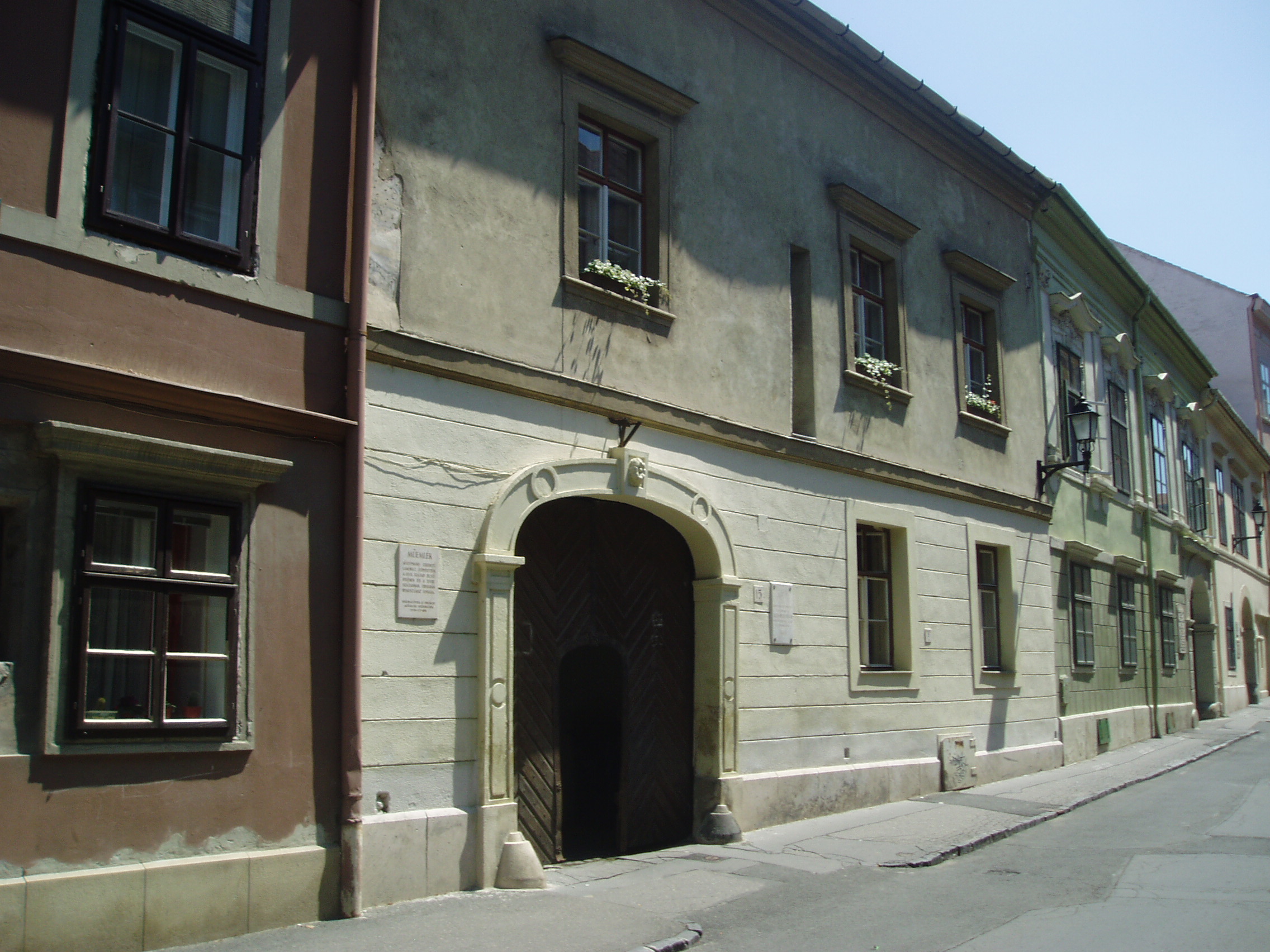 Nyilvános 1072 | 1593 | Sopron, Templom utca 15. | A középkori eredetű későbarokk, egyemeletes lakóház 1796-tól Török István patikusé volt, aki 1841-ben az evangélikus konventre hagyta. Attól kezdve itt laktak az orgonisták, így Altdörfer Keresztély is. Altdörfer Keresztély (1827–1898) Wittenbergből került Sopronba 1847-ben az evangélikus egyházközség meghívására, s itt egyházi orgonistaként és karvezetőként működött (lásd még: Sopron, Templom u. 10.). Ebben a házban született fia, Altdörfer Viktor (1860–1940) orgonista, zongoraművész és zenepedagógus, aki 1887-től haláláig szülővárosában működött mint az evangélikus templom orgonistája. Évtizedekig tanította zongorára a soproni tehetséges ifjúságot, s nem múlt el hangverseny, amelyiken nem szerepelt volna mint szólista vagy mint kísérő. Így az Altdörfer család csaknem egy évszázadon keresztül hézagpótló szerepet töltött be Sopron zenei művelődésében. Az épület homlokzatán csak Altdörfer Viktor emlékét idézi márványtábla. A kép 2008 júniusában készült. Felh. irod.: Czellár Katalin: Sopron. 3. jav. kiad. Bp. Panoráma, 2000 Csatkai Endre: Sopron zenei művelődésének vázlata. = Soproni Szemle 1979. 3. |