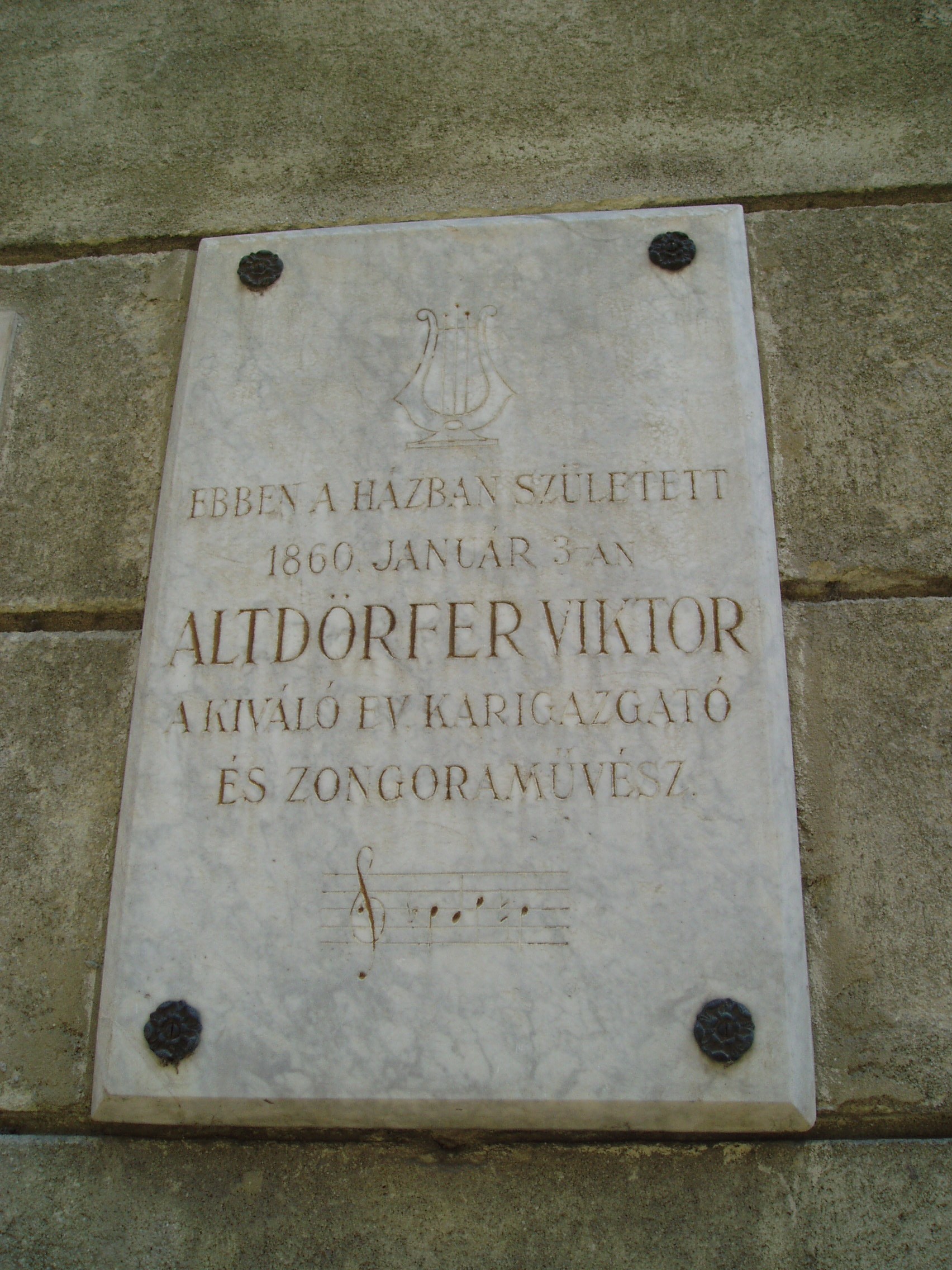 Nyilvános 1071 | 1449 | Sopron, Templom utca 15. | A középkori eredetű későbarokk, egyemeletes lakóház 1796-tól Török István patikusé volt, aki 1841-ben az evangélikus konventre hagyta. Attól kezdve itt laktak az orgonisták, így Altdörfer Keresztély is. Altdörfer Keresztély (1827–1898) Wittenbergből került Sopronba 1847-ben az evangélikus egyházközség meghívására, s itt egyházi orgonistaként és karvezetőként működött (lásd még: Sopron, Templom u. 10.). Ebben a házban született fia, Altdörfer Viktor (1860–1940) orgonista, zongoraművész és zenepedagógus, aki 1887-től haláláig szülővárosában működött mint az evangélikus templom orgonistája. Évtizedekig tanította zongorára a soproni tehetséges ifjúságot, s nem múlt el hangverseny, amelyiken nem szerepelt volna mint szólista vagy mint kísérő. Így az Altdörfer család csaknem egy évszázadon keresztül hézagpótló szerepet töltött be Sopron zenei művelődésében. Az épület homlokzatán csak Altdörfer Viktor emlékét idézi márványtábla. A kép 2008 júniusában készült. Felh. irod.: Czellár Katalin: Sopron. 3. jav. kiad. Bp. Panoráma, 2000 Csatkai Endre: Sopron zenei művelődésének vázlata. = Soproni Szemle 1979. 3. |