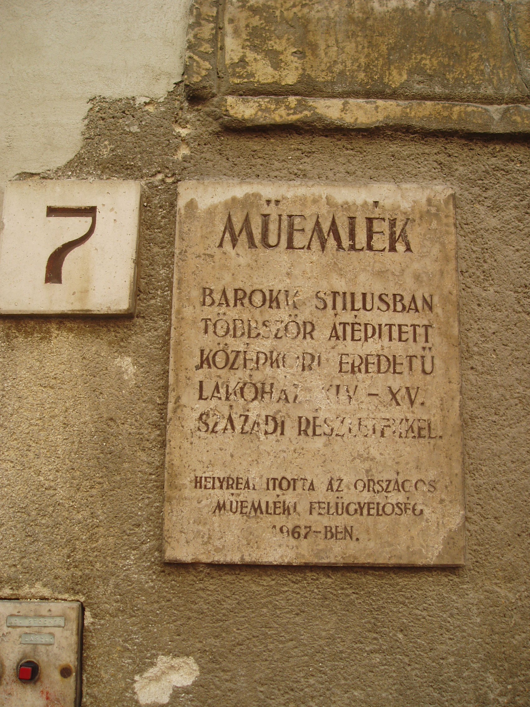 Nyilvános 1054 | 1350 | Sopron, Új utca 7. | A XVIII. században barokk stílusban átépített középkori eredetű lakóház. Emeletén egy gótikus karéjos ablak maradványai láthatók. A kép 2008 júniusában készült. Felh. irod.: Czellár Katalin: Sopron. 3. jav. kiad. Bp. Panoráma, 2000 |