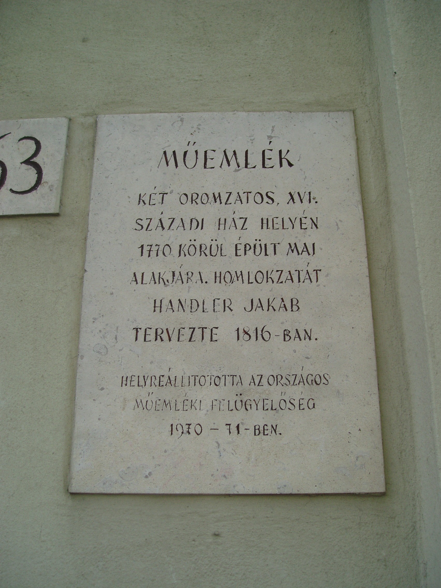 Nyilvános 1029 | 1411 | Sopron, Várkerület 63. | 1770 körül épült két XVI. századi ház helyére, a későbbiekben többször átalakították. Ebben a házban halt meg 1836-ban Dukai Takács Judit költőnő (1795-1836) tüdővészben. Sikerének titka elsősorban abban rejlett, hogy szinte megtestesítette a polgárosult hazai nőideált: több nyelven olvasott, zenélt, valamint járatos volt a poétikai és esztétikai tudományokban is. Népszerűségében közrejátszott szépsége, derűs és közvetlen egyénisége. A fénykép 2008 júniusában készült. Felh. irod.: Czellár Katalin: Sopron. 3. jav. kiad. Bp. Panoráma, 2000 |