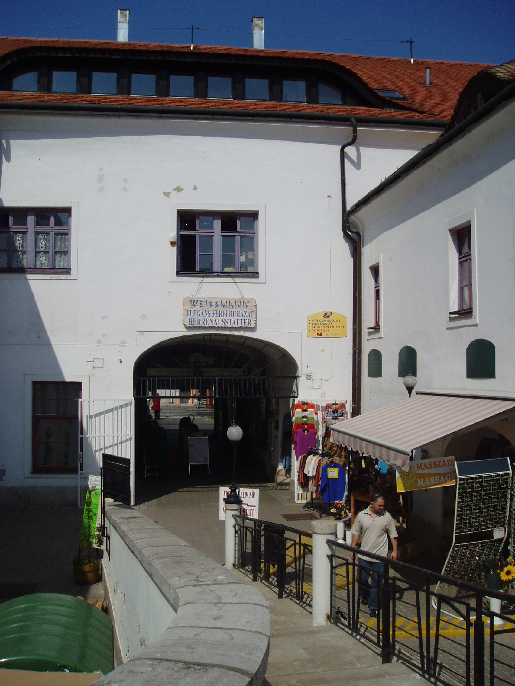 Nyilvános 951 | 1308 | Sopron, Várkerület 73. | A házban egykor vendégfogadó működött, amelyet 1595–1833 között Vörös Ökörnek hívtak, később neve Magyar Király volt. Itt szállt meg 1840-es és 1846-os soproni látogatásakor Liszt Ferenc. Az épületben ma a Korona Üzletház működik. A kép 2003-ban készült. Felh. irod.: Czellár Katalin: Sopron. 3. jav. kiad. Bp. Panoráma, 2000 |