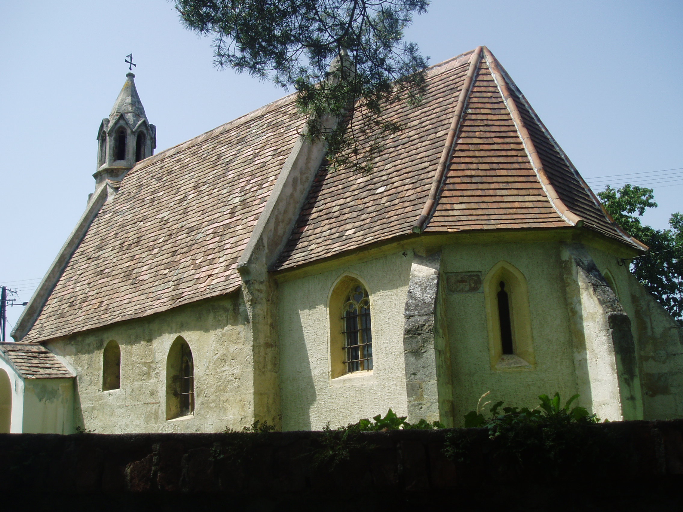 Nyilvános 1173 | 3269 | Sopronbánfalva: Bánfalvi út: Mária Magdolna-templom | A kis templom a falu egyik legértékesebb műemléke. 1291 előtt épült. Gótikus tornya a XIV. század elejéről származik, ugyancsak gótikus szentélye pedig a XV. századból. A kép 2008 júniusában készült. Felh. irod.: Czellár Katalin: Sopron. 3. jav. kiad. Bp. Panoráma, 2000 |