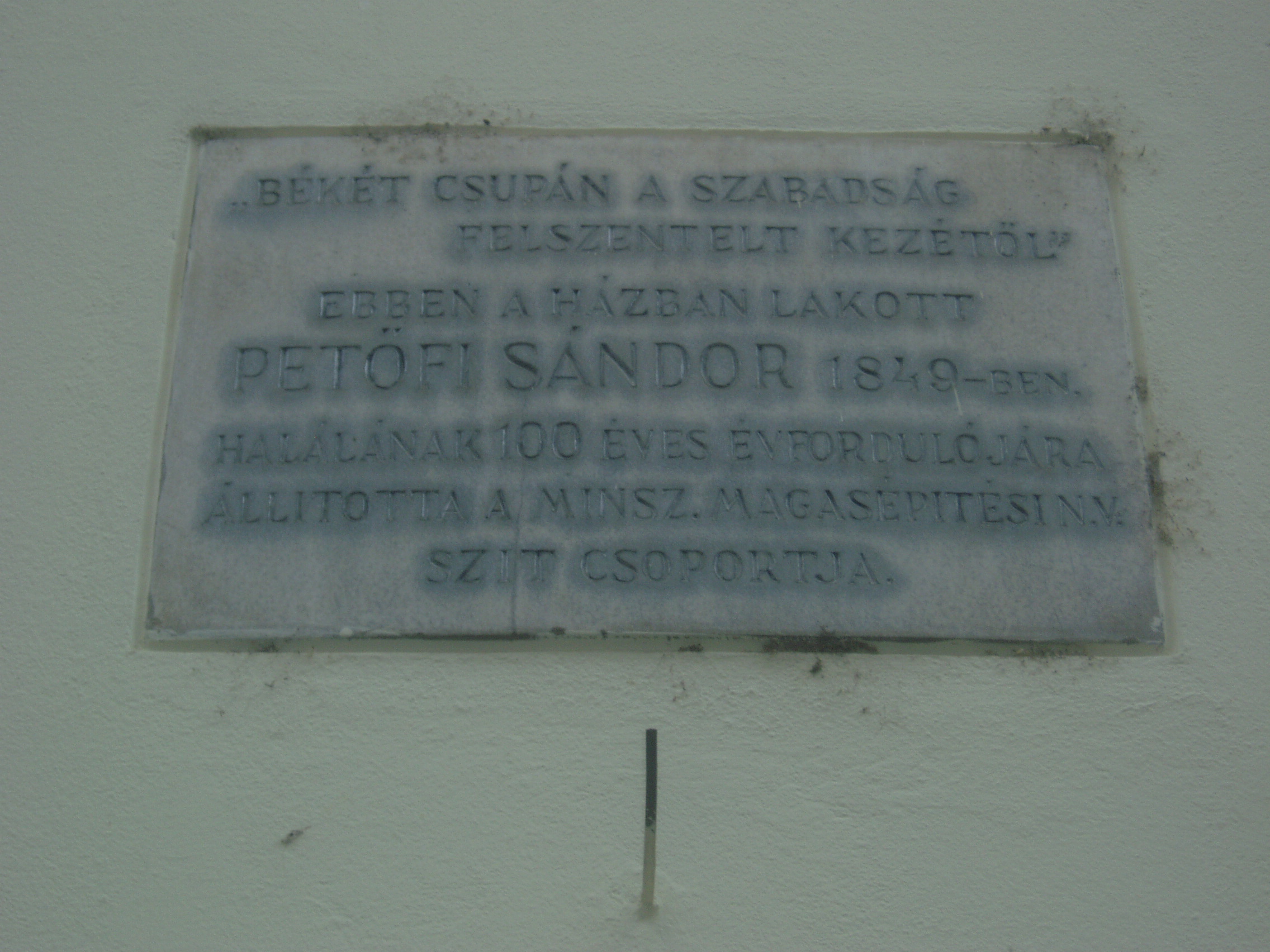 Nyilvános 1582 | 3670 | Rövid leírás | Teljes leírás (1.48 KB) | Debrecen, Batthyány utca 16. Ebben a házban lakott Petőfi Sándor gyermeküket váró fiatal feleségével 1848/49 telén, Ormós Gábor szabómesteréknél. Itt született meg 1848. december 15-én fia, Zoltán. A nagy eseményről a költő így számolt be: "Született Zoltán fiam december 15-én 1848. déli tizenkét órakor, Debrecenben, a Harmincad utcában, az utcára nyíló kapu melletti szobában... Azaz jobban mondva: pénteki napon és ami több, Debrecenben!" Visszagondolva 1843/44 telére, amit rendkívül nyomorúságos körülmények között töltött Debrecenben, nem csoda, hogy a város nem a legjobb emlékeket hagyta a költőben. A szobában, amely az utcára nyíló kapu mellett található, ma utazási iroda van... Petőfi harcra buzdító, nagyhatású költemények egész sorát írta ebben a házban: Akasszátok fel a királyokat, Itt a nyilam, mibe lőjem, Az egész világ a harcmezőn, Európa csendes, újra csendes... és más költeményeit. Innen indult a harctérre, Bem tábornokhoz, hogy aztán már csak egy-egy napra, futó látogatásra térjen vissza családja körébe A ház homlokzatán több emléktábla is idézi az történteket. A fénykép 2006 júniusában készült. Felh. irod.: Kovács Gergelyné: Debrecen. Bp. Panoráma, 1981 Papp Antal: Debrecen. Bp. Panoráma, 1976 Petőfi emlékhelyek a Kárpát-medencében. Kiskőrös, 1996 |