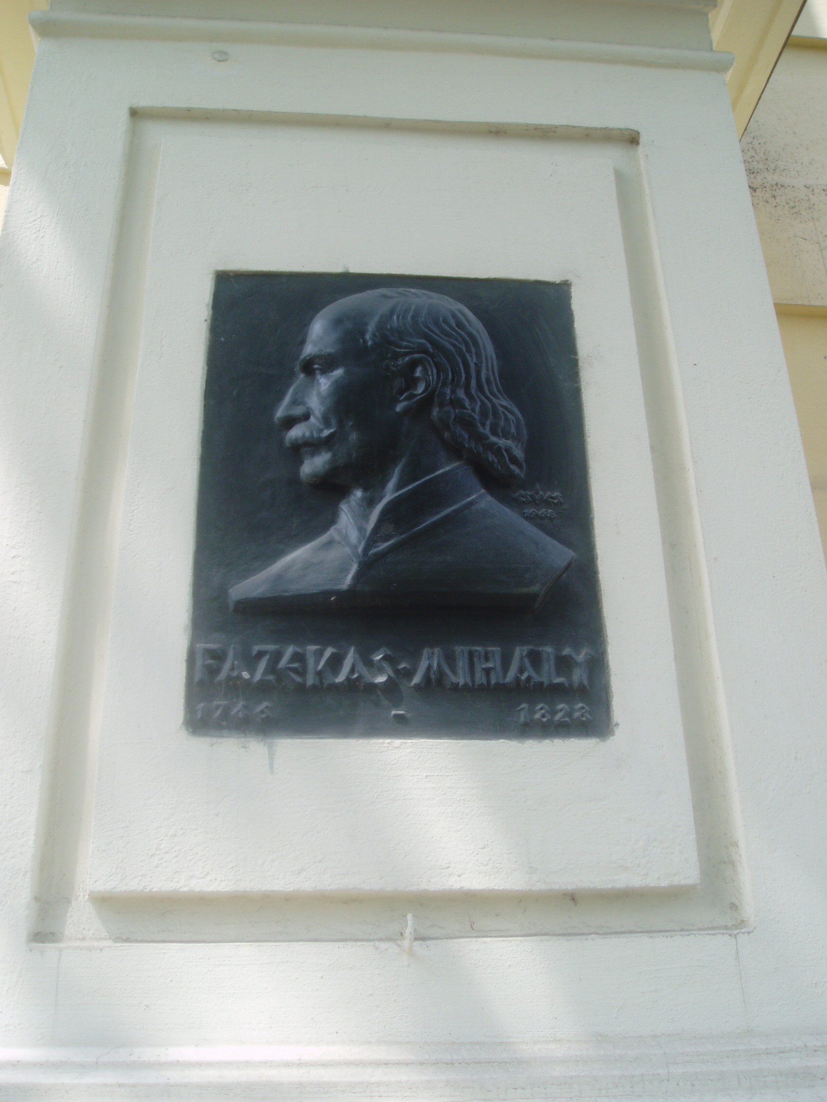 Nyilvános 1153 | 1644 | Debrecen, Kálvin tér 16. Református Kollégium: Fazekas Mihály domborműve | A Kollégium mai épülete a magyar klasszicista építészet nagyszerű példája. A főbejárat homlokzatát Nagy Sándor János bronz domborművei díszítik. Kettős oszlopot hordozó széles táblán Kálvin és Zwingli egymással szembeforduló alakja látható. A mellette lévő oszlopon Arany János bronz domborművét találhatjuk, míg a Füvészkert utca felől Csokonai Vitéz Mihály emlékét örökítették meg. Ugyancsak a főbejáraton látható Kölcsey Ferenc portréja, Nagy Sándor János egyik legszebb alkotása. A sort Fazekas Mihály ésMóricz Zsigmond portréja egészíti ki. Medgyessy Ferenc bronz domborműve a kollégium hősi halottainak, tanároknak és diákoknak állít emléket. A képen Fazekas Mihály domborműve látható, aki a Kollégium diákjaként - Csokonaihoz hasonlóan - szintén összekülönbözött a tanári karral, s 16 éves korában katonának állt. Miután tucatnyi harcteret végigküzdött az osztrák hadseregben, ráeszmélt, hogy neki nincs leszámolnivalója a felvilágosodás eszméinek győzelméért küzdő francia seregekkel, s főhadnagyi rangban nyugalomba vonult. Debrecenbe költözött (lásd: Debrecen, Piac utca 68.). Itt is hunyt el, sírja a Köztemetőben van (lásd: Debrecen, Bocskai út). A fénykép 2006 júniusában készült. Felh. irod.: Kovács Gergelyné: Debrecen. Bp. Panoráma, 1981 Papp Antal: Debrecen. Bp. Panoráma, 1976 Győri L. János: "Egész Magyarországnak és Erdélynek világosító lámpása": a debreceni Református Kollégium története. Debrecen, 2006 |