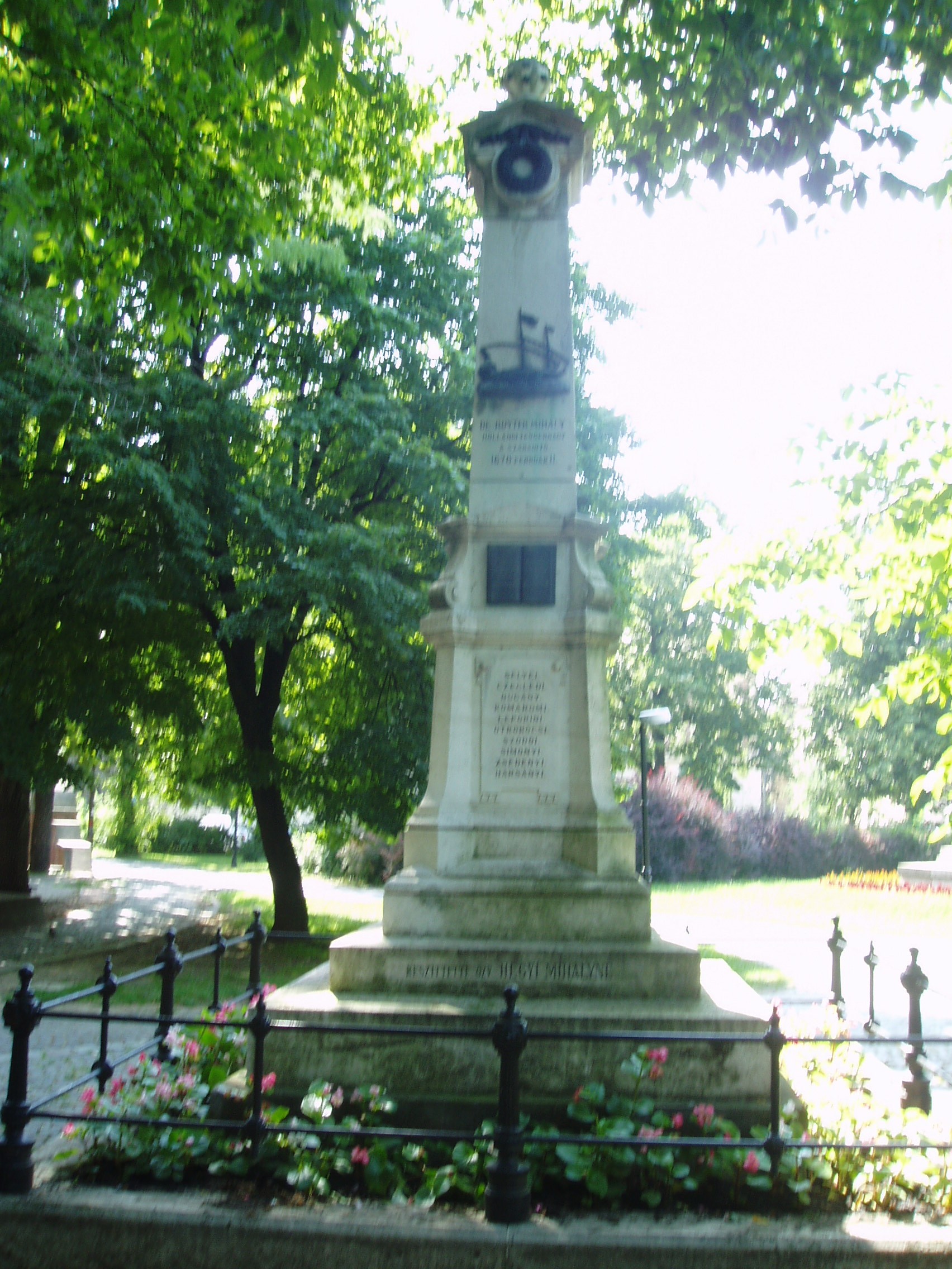 Nyilvános 1117 | 1955 | Debrecen, Emlékkert: Gályarabok emlékoszlopa | A Nagytemplom és a Kollégium között húzódik az Emlékkert. 1895-ben itt állították fel a Gályarabok emlékoszlopát. Az oszlop azoknak a református papoknak és tanítóknak emlékét őrzi, akiket a Wesselényi-összeesküvés leleplezése után I. Lipót császár ítélt gályarabságra 1673-ban. Az ellenreformáció áldozatait 1676. február 11-én Ruyter holland admirális váltotta ki a rabságból és küldte haza. Az emlékoszlopot özvegy Hegyi Mihályné állíttatta. Négy oldalán a gályarabságot túlélt és hazatért negyven református pap, illetve tanító nevét vésték fel. Köztük a Jablonczai név is olvasható: viselője Szabó Magda írónő egyik őse. Szabó Magda több könyvében is ír erről (Ókút, Régimódi történet). A fénykép 2006 júniusában készült. Felh. irod.: Kovács Gergelyné: Debrecen. Bp. Panoráma, 1981 Papp Antal: Debrecen. Bp. Panoráma, 1976 |