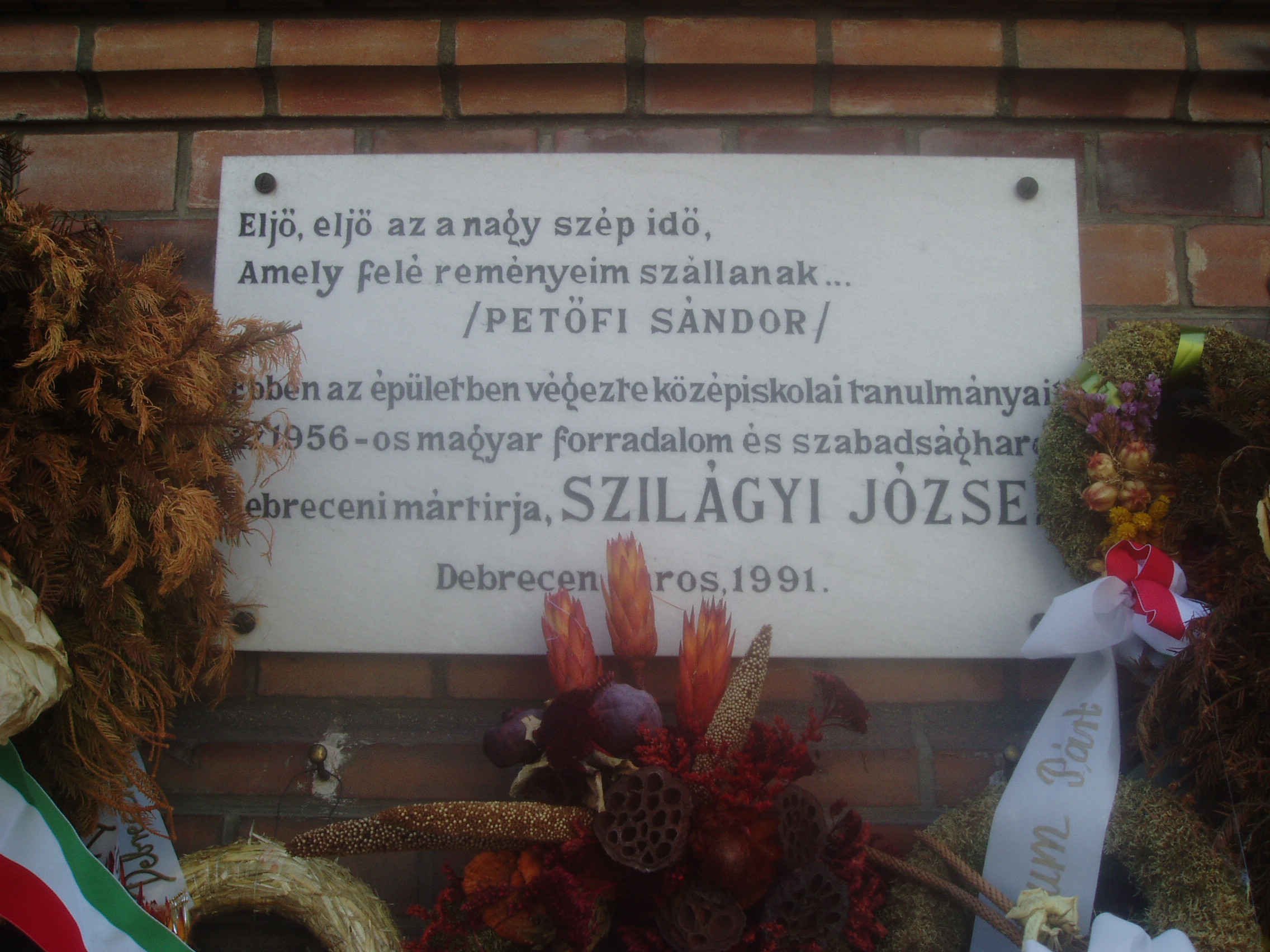 Nyilvános 1098 | 1682 | Debrecen, Péterfia utca 1-7. | A Kölcsey Ferenc Református Tanítóképző Főiskola mostani otthona 1911-13 között épült Petz Samu tervei alapján. Korábban itt a főgimnázium működött. Ide járt iskolába és itt is érettségizett a debreceni születésű Szilágyi József (1917-1958) politikus, aki 1944 végén rövid ideig Debrecen rendőrkapitánya is volt. 1956-ban megszervezte és vezette Nagy Imre miniszterelnöki titkárságát. November 4-én családjával együtt a jugoszláv követségre menekült, majd őt is Romániába internálták. Snagovban tartóztatták le. A Nagy Imre per vádlottjaként 1958. április 24-én kivégezték. A fénykép 2006 júniusában készült. Felh. irod.: www.kfrtkf.hu/index3.html Magyar életrajzi lexikon |
