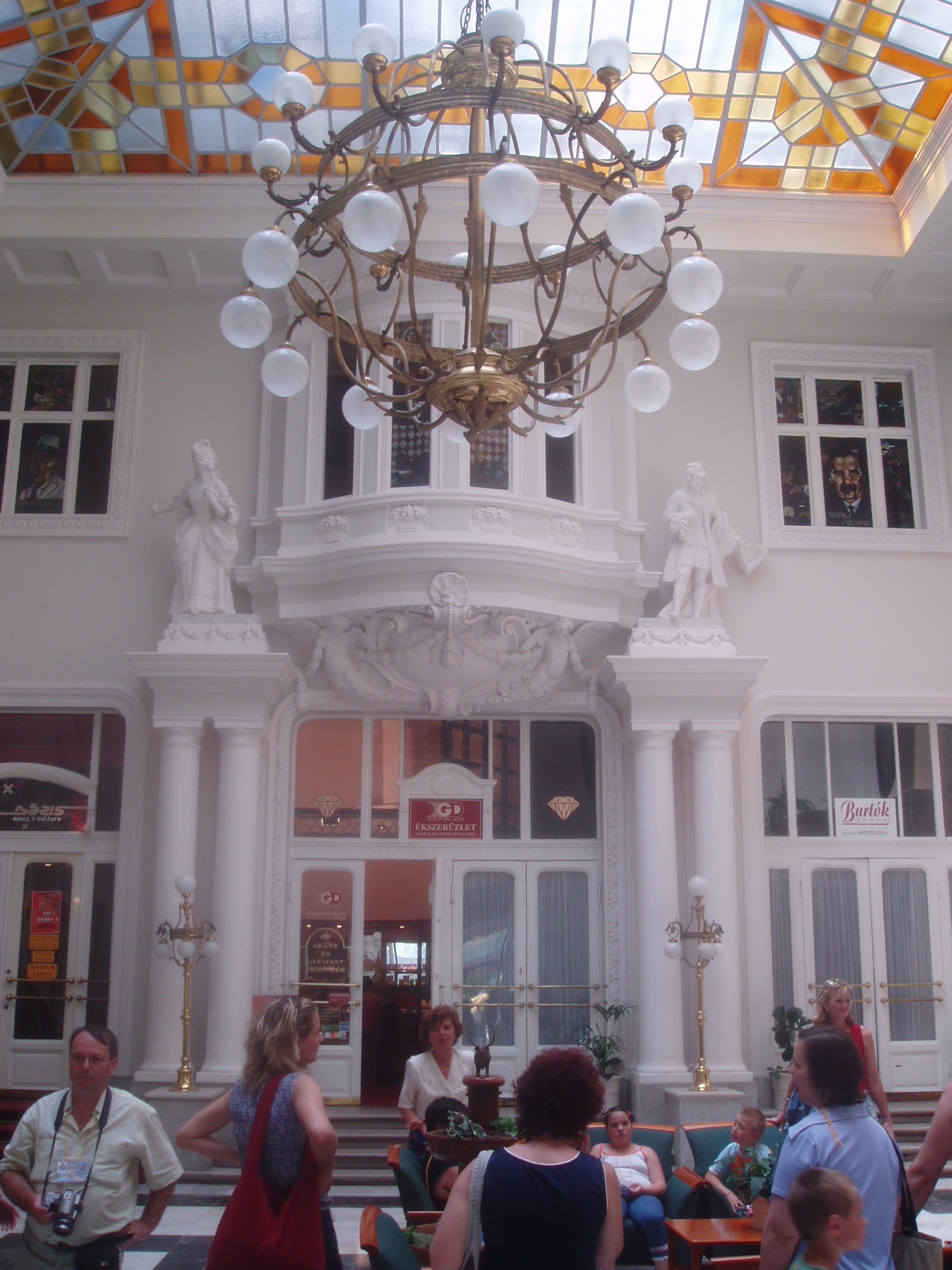 Nyilvános 1150 | 1779 | Debrecen, Piac utca 11-15. Arany Bika Szálloda | A szecessziós épületegyüttes 1913–1915 között épült Hajós Alfréd és Villányi Lajos tervei szerint. Új szárnyát 1976-ban építették hozzá. A négyemeletes főépület homlokzatán olasz kőfaragók által készített szecessziós plasztikák láthatók. A szálloda előterének két oldalát Józsa János színes üvegablakai díszítik. A régi és új szárnyat összekötő hallban egy rokokó pár életnagyságú szobra mellett vezet fel a lépcsősor az egykori díszteremhez. A ma Bartók Béláról elnevezett terem Debrecen 1500 férőhelyes, legnagyobb előadóterme. A tükörteremben Benyovszky István és Veres Géza festményei régi debreceni és hortobágyi életképeket idéznek fel. A mai Aranybika szálló helyén már a XVI. század végén vendégfogadó állt. 1699-ben árverezték el Bika András debreceni polgár egykor itt állott családi házát (a szálloda róla kapta a nevét), s benne négy vendégszobát rendeztek be. A hamarosan szűknek bizonyult, s a Rákóczi–szabadságharc idején erősen meg is rongálódott régi épületre 1799-ben emeletet húztak, majd 1809-ben ismét átépítették. Ekkor készült el vasból vert, bikát ábrázoló cégére, amely 1878-ig hirdette a közönségnek a szálló létét. 1840 körül a földszinten kávéházat nyitotak. 1848-ban egy időre Nádor szállóra keresztelték, s felsőbb parancsra a Bach–korszakban is így hívták. Az öreg épületben számos nevezetes vendég lakott, többek között Széchenyi István, Vörösmarty Mihály, Wesselényi Miklós, Deák Ferenc, Petőfi, Bem tábornok. Nagy Sándor és vezérkara 1849. augusztus 2-án innét indult a csatatérre, ahol a maroknyi magyar sereg nem tudott ellenállni a többszörös túlerőnek. Így estére már Paszkievics herceg és vezérkara ütütt a Bikában tábort s ünnepelték a diadalt, míg Debrecen lakói bezárt házakban, lefüggönyzött ablakok mögött siratták az elveszett reményeket. A XIX. század végére már nemzetközi viszonylatban is jól ismert, patinás szálló kicsinek bizonyult, ezért Steindl Imre tervei szerint pompás új épületet emeltek. A szállodával egyidejűleg kávéháza is megnyílt, első vendége Jókai Mór volt. Az új, egyemeletes szállodaépület pezsgő központja lett Debrecen szellemi és társasági életének. A debreceni írók és művészek, valamint a fővárosból idelátogató barátaik gyakran találkoztak a „közvélemény–asztalnak” nevezett irodalmi törzsasztalnál. 1913-ban elkezdték ennek az épületnek a lebontását is, s a szálló mostani épülete 1915-re lett készen. Az 1920-as években gyakori vendége volt a Bikának Móricz Zsigmond (szobáját születésének évfordulóján emléktáblával jelölték meg) és tizenöt éven át lakott benne Oláh Gábor költő. 1944/45 telén a szálloda adott otthont az Ideiglenes Nemzetgyűlés, majd az Ideiglenes Kormány tagjainak. Felh. irod.: Papp Antal: Debrecen. Bp. Panoráma, 1976 Kovács Gergelyné: Debrecen. Bp. Panoráma, 1981 300 év históriája: egy polgárváros az Aranybikában. Debrecen, Pro Millennium, 1999 |