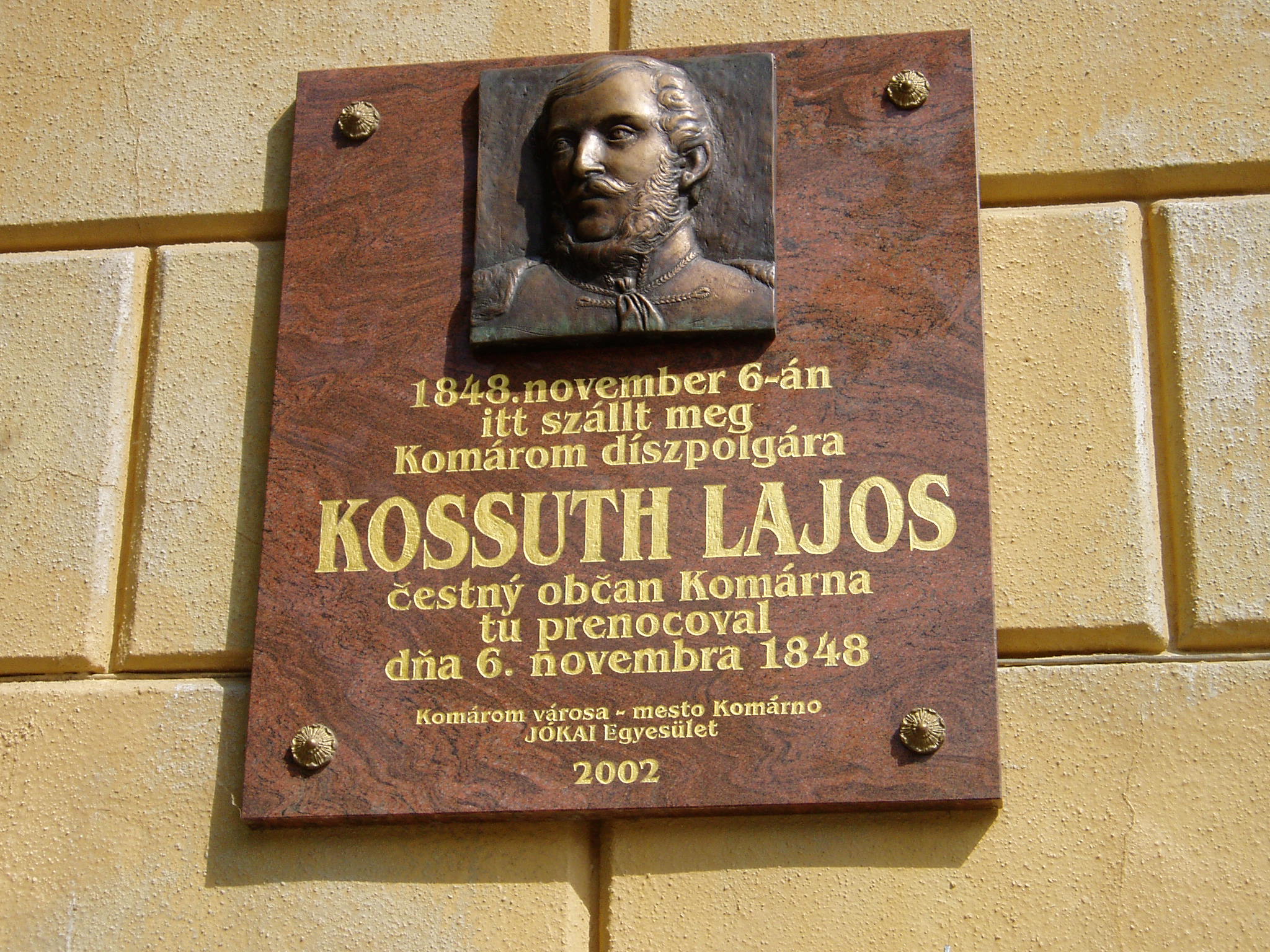 Nyilvános 1433 | 3775 | Komárom (Komárno), Klapka tér 2. | Az eredetileg a Komáromi Első Takarékpénztár székházának 1884-ben emelt, Ney Béla által tervezett épülete ma rendelőintézet. Helyén korábban az ún. Dumcsa–ház állott, ebben székelt 1848/49 történelmi hónapjaiban a magyar térparancsnokság. Az épületet lábasháznak is nevezték városszerte, mert az utcafronton árkádos oszlopai voltak. Az 1849. augusztus 3-án lezajlott győztes ácsi csata után itt, az épület előtt tartottak katonai parádét, amelyen dokumentálhatóan először hangzott fel Egressy Béni friss szerzeménye, a Klapka–induló, szerzője vezényletével, a VIII. hadtest zenekarának előadásában. A mostani épületen Kossuth Lajos emléktáblája olvasható, aki itt szállt meg toborzókörútján, 1848. november 6-án. A fénykép 2005. júliusában készült. Felh. irod.: www.komarno.sk Mácza Mihály: Komárom nevezetességei. Pozsony, Madách-Posonium, 2002 Szénássy Zoltán: A komáromi induló hőse. Rév–Komárom. KT Kiadó, 1998 |