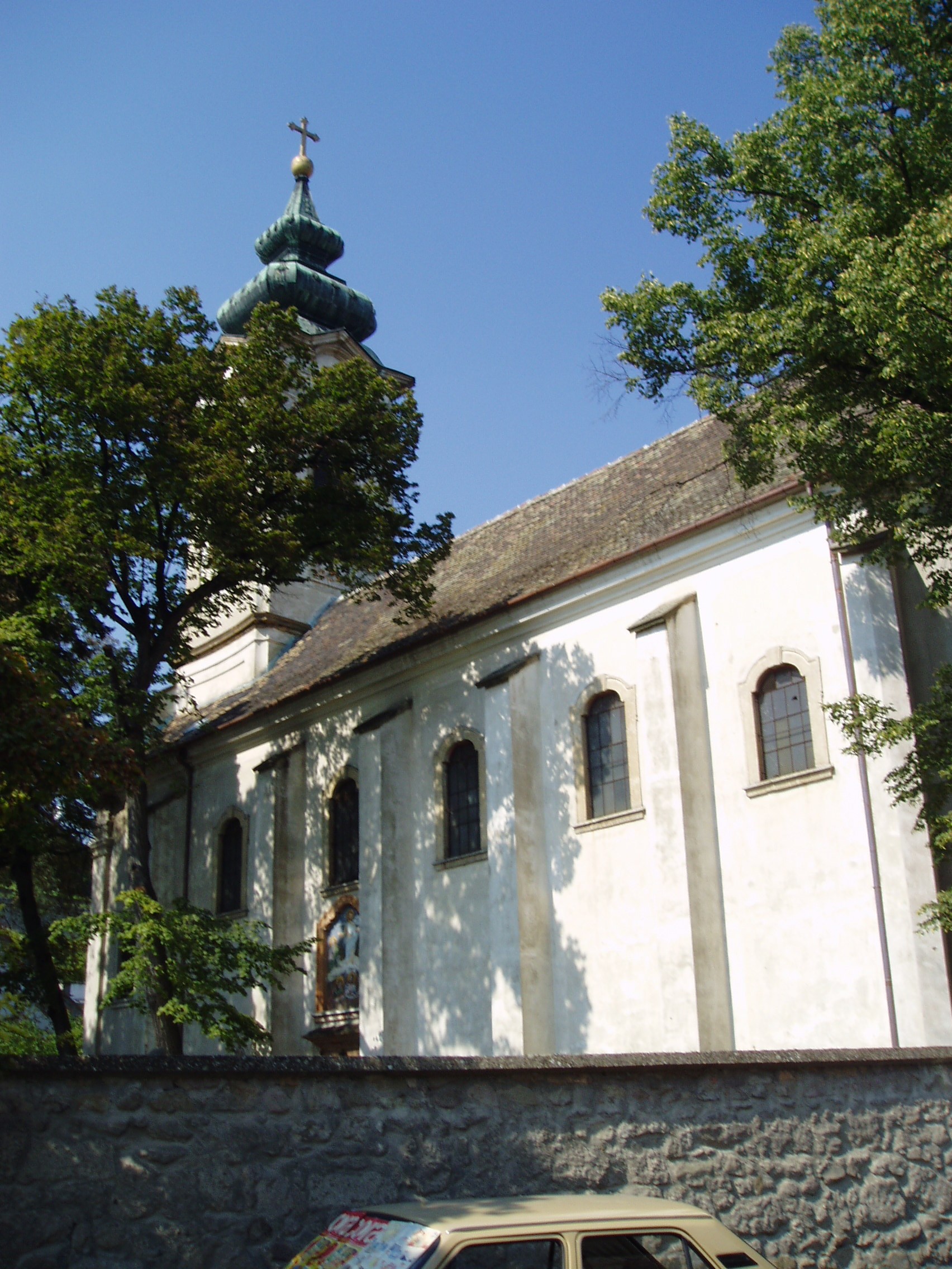 Nyilvános 1161 | 2089 | Szentendre, Vujicsics tér: Preobrazsenszka-templom | A középtornyos, barokk Preobrazsenszka-templomot a Boszniából érkezett szerbek építették 1741-1746 között. Klasszicizáló díszítőelemei valószínűleg 1770 után - egy nagyobb felújítás és átalakítás révén - készültek. Toronnyal 1852-ben koronázták meg az épületet. A templomot vastag kőkerítés veszi körül. A kerítésfal korinthoszi oszlopokkal szegélyezett, díszes, kovácsoltvas kapuját a pesti szerb temploméról mintázták, 1803 és 1806 között Olhauser József helybéli lakatosmester készítette. A templom az ortodox (görögkeleti) egyházi műemlékek között kiemelkedő helyet foglal el. Belsejében nagyrészt megmaradt a XVIII. század második felében és a XIX. század elején készült berendezés. Jelentős képzőművészeti érték a templom ikonosztáza, amely a legszebb hazai ikonfalak egyike, az első orosz-ukrán típus szerint épült képfal. A templom körül augusztus 19-én tartják Szentendre legnevezetesebb szerb búcsúját, amellyel Jézus Tábor-hegyi színeváltozásáról emlékeznek meg. Ezeken búcsúkon rendszeresen megjelent és muzsikált Vujicsics Tihamér, aki 1979-ben - Damaszkusz felé tartva - repülőszerencsétlenség áldozata lett. A szerencsétlenség éppen augusztus 19-én vetett véget a szerb származású zeneszerző életének. Rá emlékezve nevezték el róla 2000-ben a templom terét és állították fel emlékkútját (lásd: következő kép). A fénykép 2005 szeptemberében készült. Felh. irod.: Szentendre. Szerk. Sándyné Wolf Katalin. Bp. Panoráma, 1985 www.templom.hu www.vendegvaro.hu |