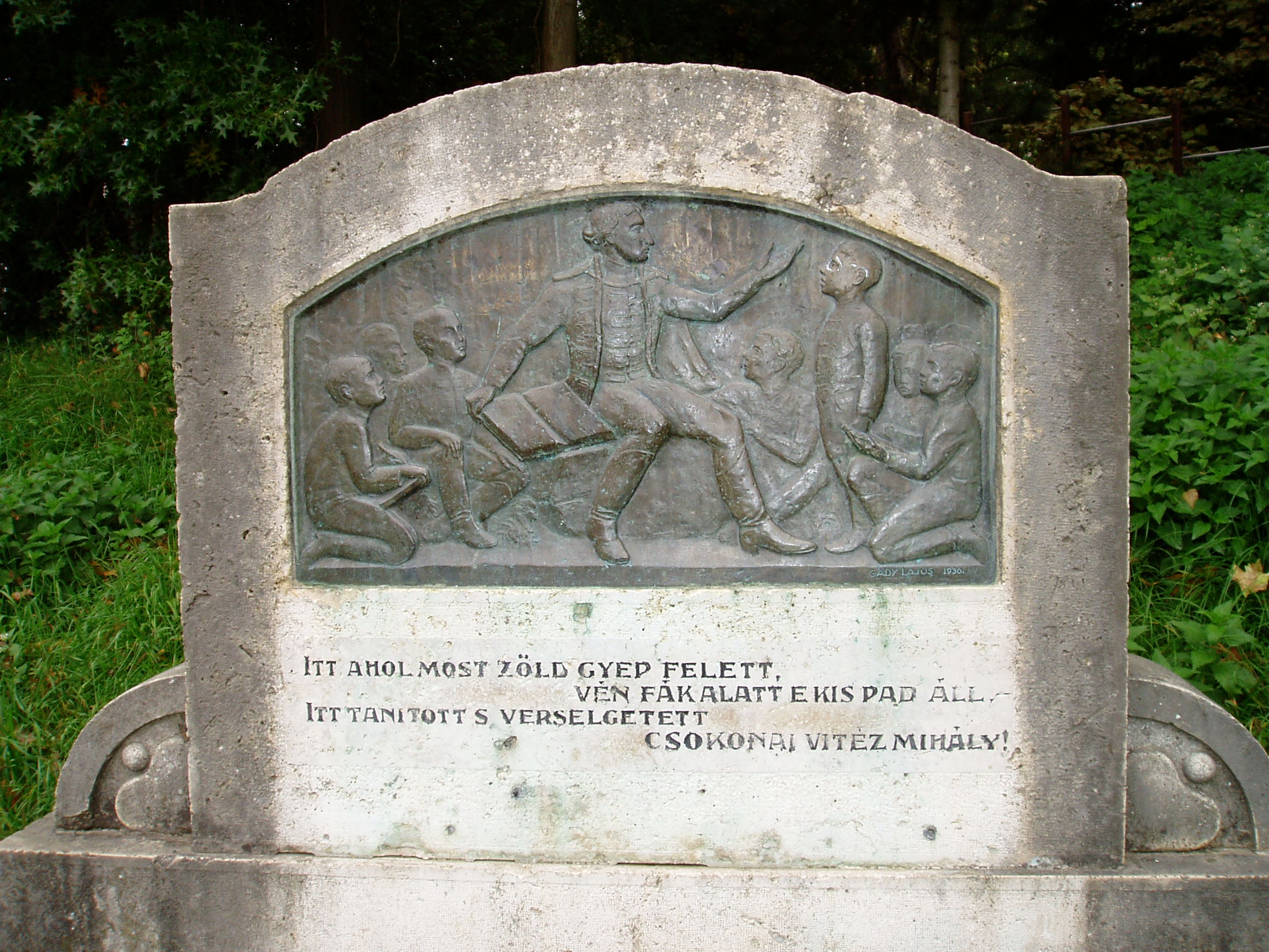 Nyilvános 1254 | 2823 | Csurgó, Széchenyi tér 9. | A Csokonai Vitéz Mihály Református Gimnázium és Általános Iskola mai épülete az egykori vadasparkban áll. A nagy kiterjedésű, 4 hektárnyi parkban nyolcvan féle, ritkaságszámba menő növényfaj él. A látogatót együttesen ragadja meg a patinás iskola látványa, a hatalmas ősfák közötti sétányok hangulata és a neves egyéniségek tiszteletére állított emlékek együttese. A park távolabbi részén, a gimnázium háta mögött állították fel 1936-ban Csokonai Vitéz Mihály emlékpadját. A költő 1799 őszétől 1800 májusáig működött segédtanárként a csurgói gimnáziumban. Bár szeretett volna állandó alkalmaztatást, hogy Lilláját feleségül vehesse, még Sárközy István és Festetics György támogatásával is csak egy helyettesítő tanári állást kapott arra az időre, amíg a posztra kiszemelt tanár hazaérkezik külföldről, befejezve kinti egyetemi tanulmányait. Korabeli visszaemlékezésekből kirajzolódik előttünk a tanár Csokonai alakja. Csokonai az akkori gyakorlathoz képest teljesen rendhagyó módon tanított. Előadásai olyan érdekfeszítőek voltak, személyiségének kisugárzása olyan erős volt, hogy az akkoriban szokásos fegyelmezési eszközökhöz soha nem kellett folyamodnia. Óráit gyakran a szabadban tartotta, ahol természetes emberi közvetlenséggel beszélgetett diákjaival. S hogy ez a kedvenc helye hol volt, azt diákok és tanárok emlékezete őrizte nemzedékről nemzedékre. Itt, a park egy rejtett dombhajlatában állították fel 1936-ban a költő emlékpadját. A kőbe vésett versikét Écsy Ödön István, a gimnázium akkori tanára írta. Felh. irod.: Horváth József: Csurgó. Műemlékek. Bp. Tájak, Korok, Múzeumok Kiskönyvtára 441. 1982 Csurgói kalauz. Szerk. Terényi Zoltán. 1974 Látnivalók Somogy megyében. Miskolc, Well-PRess Kiadó, 2000 www.vendegvaro.hu |