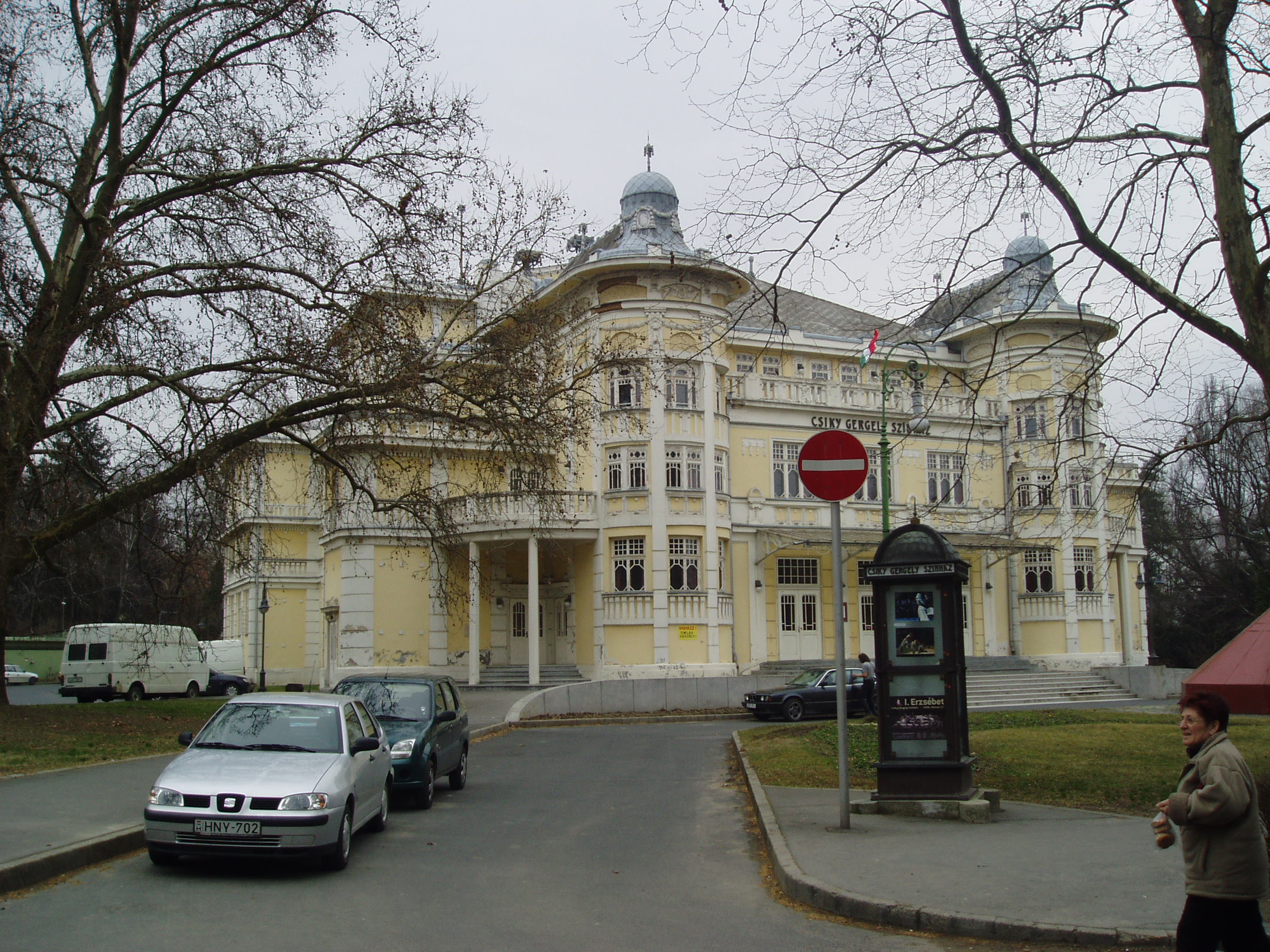 Nyilvános 1059 | 1658 | Kaposvár, Rákóczi tér 1. Csiky Gergely Színház | 1911-ben épült szecessziós stílusban Magyar Ede és Stahl József tervei szerint. A maga idejében az ország legmodernebb és legnagyobb vidéki színháza volt. Az erősen leromlott épületet az 1980-as években újították fel. Az első évtizedekben alkalmi társulatok játszottak benne, 1945 után pedig a pécsi színház, illetve a faluszínház játszóhelye volt. Állandó társulata 1955-ben jött létre. Az 1970-es évek elejétől az ország egyik legkiválóbb, mára legendássá vált színházi műhelye lett. A fénykép 2006 márciusában készült. Felh. irod.: Kaposvár és környéke. Kaposvár, Infomark, 2002 Látnivalók Somogy megyében. Miskolc, Well-PRess, 2000 /Vendégváró/ www.csiky.org |